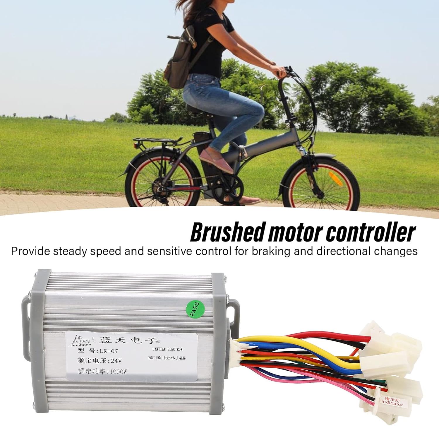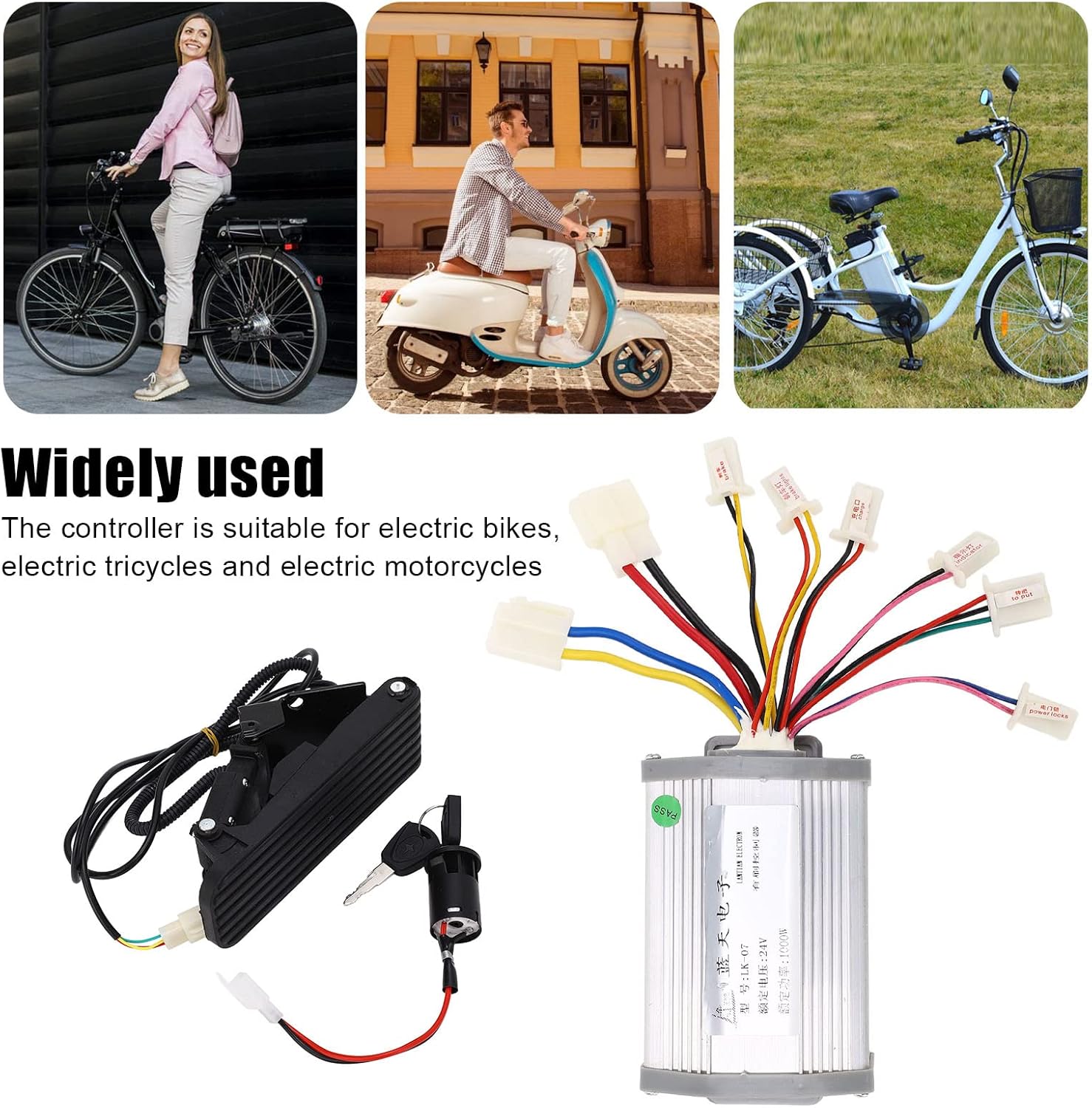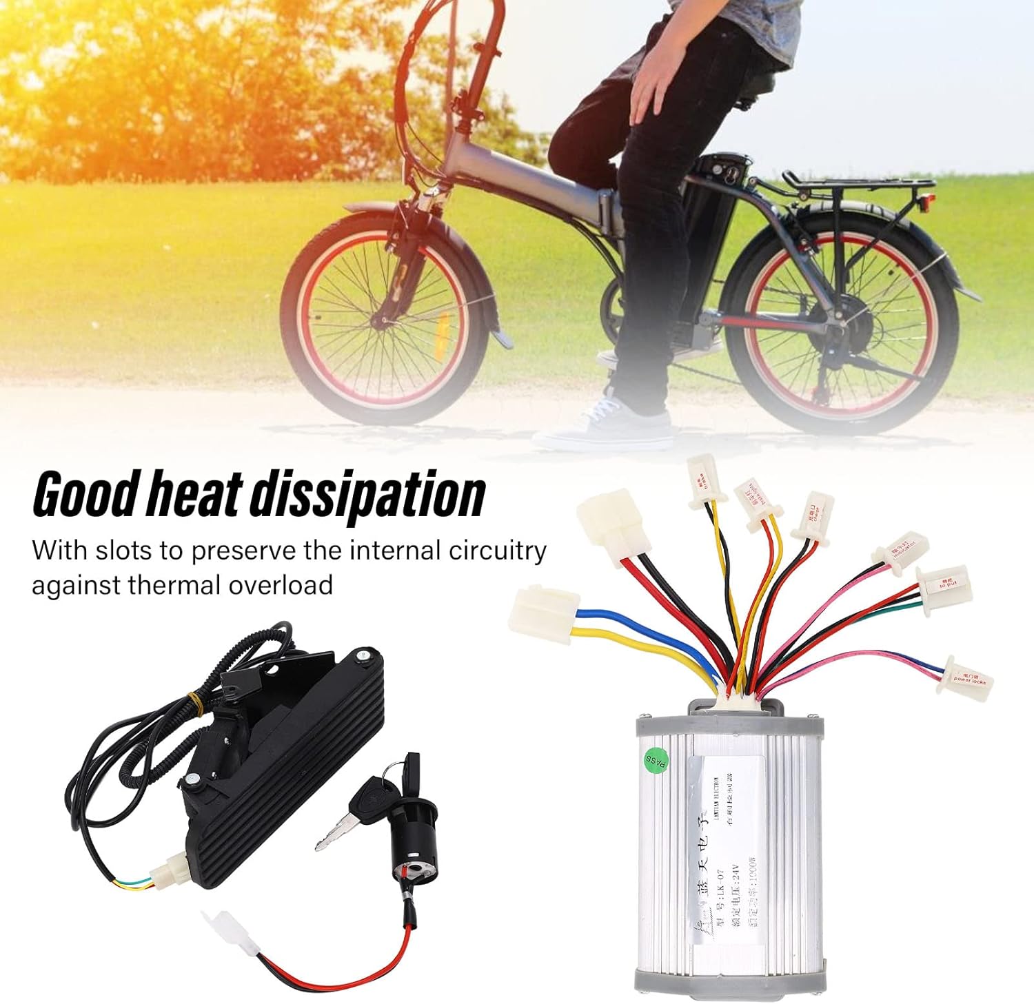 APPLICAZIONE GAS PEDALE: Il pedale dell'acceleratore per bici elettrica si applica a bici elettriche da 12 V 99 V, bici elettriche convertite, scooter e tricicli. CONTROLLO SENSIBILE: il controllo del motore della spazzola può fornire una velocità stabile e un controllo sensibile della frenata e del cambio di direzione, con prestazioni stabili e affidabili. FACILE INSTALLAZIONE: l'acceleratore a pedale è facile da installare e utilizzare, adatto a persone a cui piace usare i piedi per accelerare. BUONA DISSIPAZIONE DEL CALORE: il guscio del controller utilizza metallo di alta qualità con tacca per proteggere il circuito interno dal sovraccarico termico grazie alla buona dissipazione del calore. CONTROLLER 24V 1000W: La tensione è 24V, la potenza nominale è 1000W e ha funzioni di protezione come protezione da sottotensione, protezione da sovracorrente, protezione antibloccaggio, ecc., per garantire l'uso e la sicurezza delle biciclette elettriche.