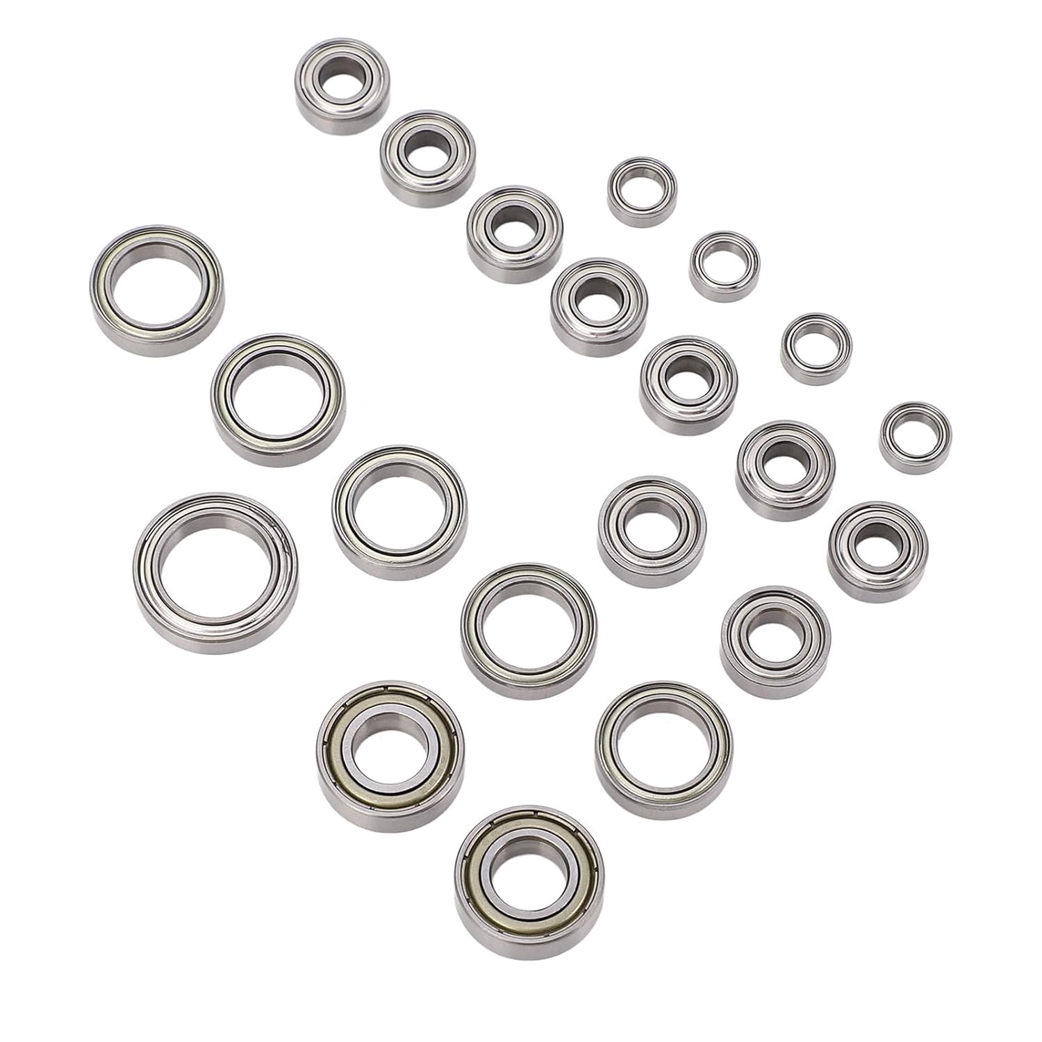 [Prestazioni migliorate] Realizzati in acciaio inossidabile di alta qualità, i nostri cuscinetti hanno un'eccezionale precisione di rotazione e un basso coefficiente di attrito. Migliora l'accelerazione, la velocità massima, la manovrabilità e la stabilità del tuo veicolo RC. [Copertura completa] Questo kit contiene 21 cuscinetti di diverse dimensioni, fornendo una copertura completa per Slash 4x4. Operazioni più fluide, usura ridotta delle parti rotanti come mozzi, differenziali e sistemi di sterzo. [Installazione e sostituzione facili] Progettato per un'installazione rapida e precisa su Slash 4x4. Le marcature chiare garantiscono un risparmio di tempo nell'installazione e nella sostituzione di ciascun cuscinetto. [Prolungare la durata utile] I cuscinetti di alta qualità bloccati garantiscono una durata e una resistenza all'usura eccezionali. Allunga significativamente la vita dei componenti del tuo veicolo e riduce la frequenza delle riparazioni e i costi di manutenzione per una migliore economia. [Effetto di raffreddamento migliorato] Il design ottimizzato di dissipazione del calore riduce le temperature operative, prolungando la durata dei cuscinetti e migliorando la stabilità e l'affidabilità durante le operazioni ad alto colore.