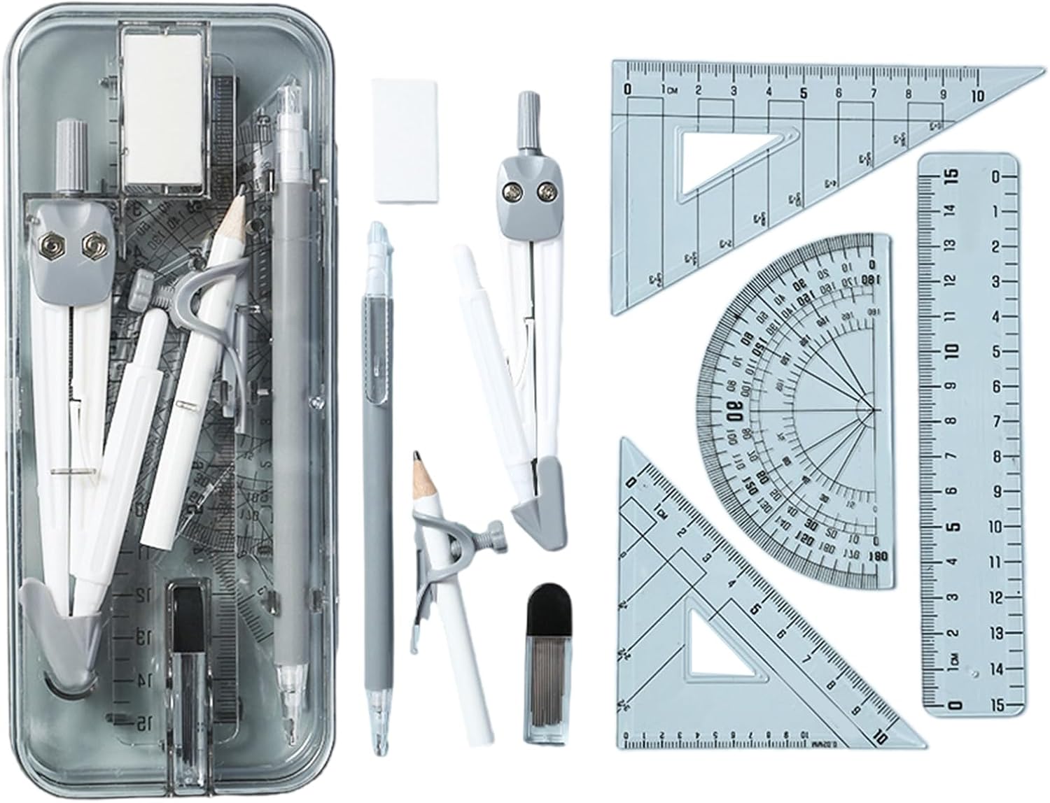 Questo set di 9 compassi geometrici offre un disegno preciso con strumento, combinando la durata per un uso senza sforzo in aule o studi professionali Perfetto per compiti in classe, progetti architettonici o esigenze di redazione, garantendo precisione in ambiente educativo e professionale Il set include bussole, righelli, goniometri e custodia, con bordi arrotondati per una portabilità organizzata per studenti, artisti, ingegneri e designer che cercano uno strumento multifunzionale per disegni tecnici, progetti scolastici o schizzi creativi Ogni strumento vanta marcature di misurazione incise per la precisione, mentre la custodia mantiene l'essenziale al sicuro durante il trasporto o lo stoccaggio