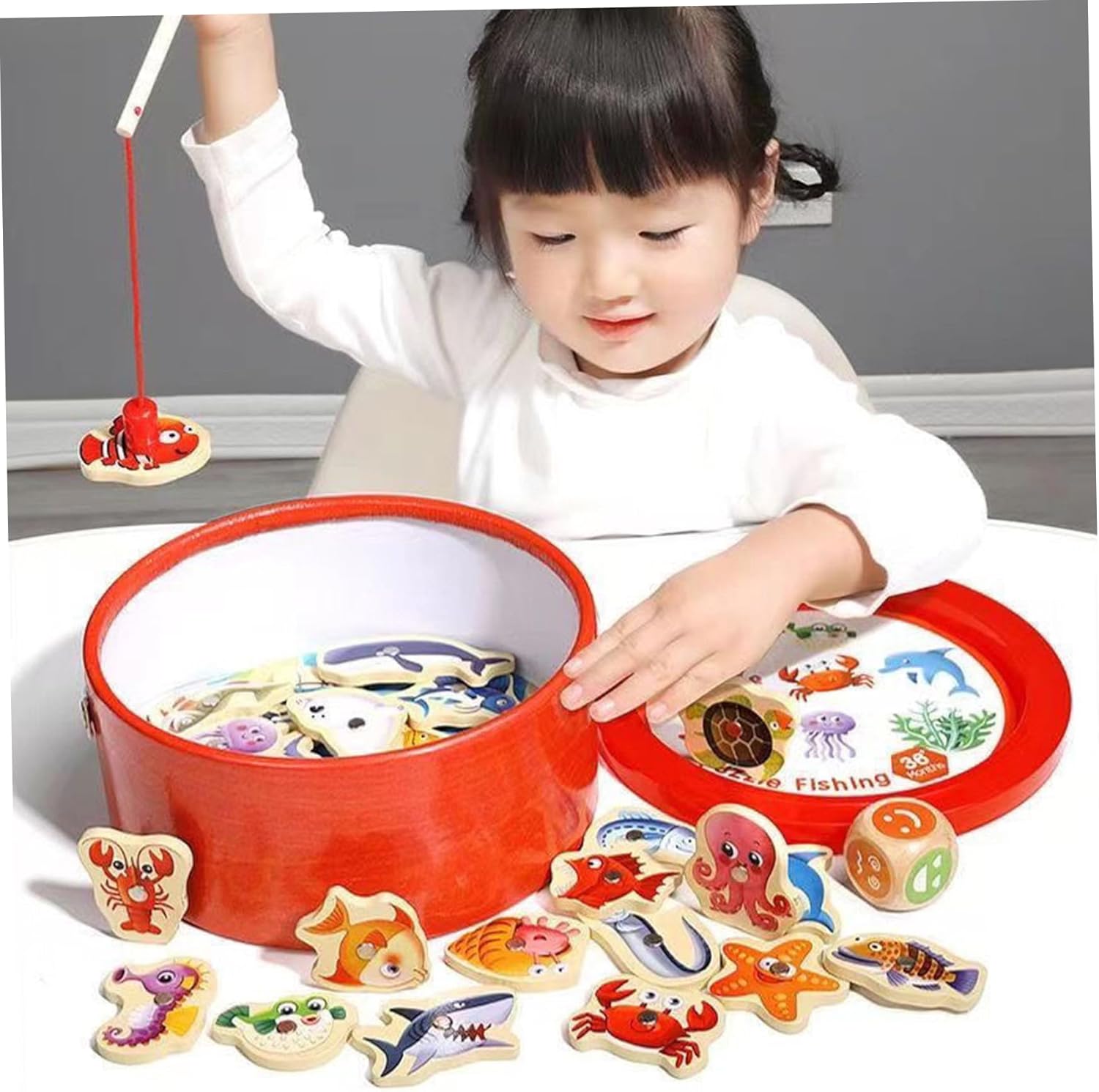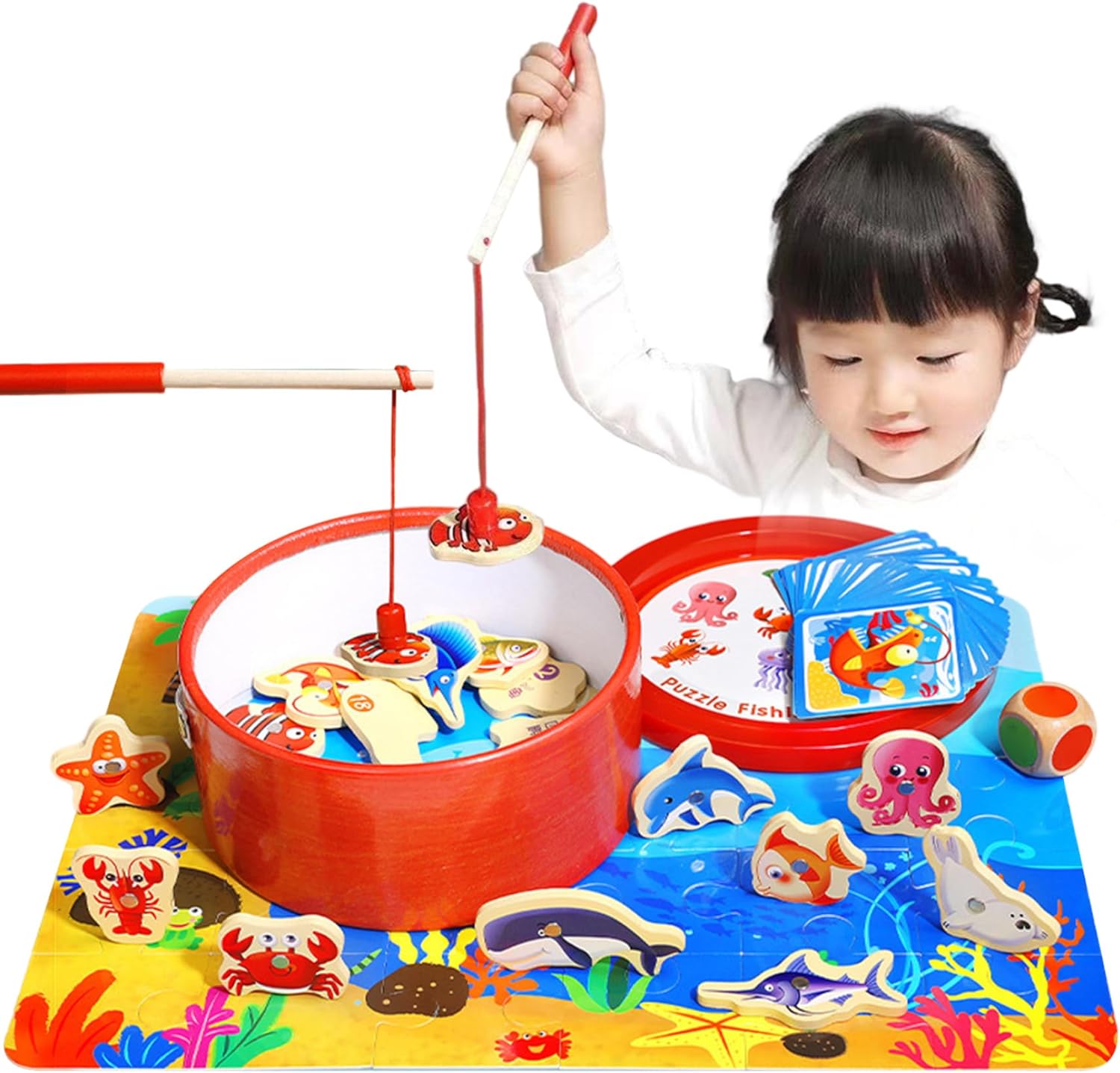Migliora le capacità motorie: questo gioco di pesca magnetica aiuta a sviluppare la coordinazione degli occhi a mano, la destrezza e la concentrazione, rendendolo perfetto per i bambini di età compresa tra 2 e 5 anni per praticare le capacità di sviluppo essenziali attraverso il gioco coinvolgente. Divertimento portatile e stabile: la costruzione in legno leggera e il design compatto rendono facile da trasportare ovunque, adatto per il gioco interno o esterno, garantendo divertimento duraturo e resilienza contro l'uso attivo. Regalo perfetto per bambini: progettato come un regalo attraente e pieno di divertimento, questo kit di pesca fa appello soprattutto a ragazze e ragazzi, ideale per compleanni, vacanze o occasioni speciali per innescare la creatività e l'immaginazione all'aperto. Giochi coinvolgenti ed educativi: con pesci luminosi e facilmente riconoscibili e canne magnetiche, questo giocattolo incoraggia l'apprendimento cognitivo, il riconoscimento del colore e il conteggio, combinando intrattenimento con l'educazione della prima infanzia. Design sicuro e adatto ai bambini: realizzato con pezzi di legno liscio e colorato e vernice non tossica, questo kit di pesca a magnete garantisce un gioco sicuro per bambini e bambini piccoli, dando ai genitori la pace mentre i bambini si divertono con ore di divertimento.