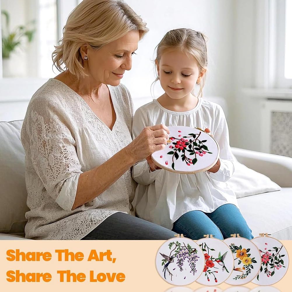 Design splendido e vivace: questo kit da ricamo presenta un bellissimo motivo floreale con dai colori vivaci. Una volta completato, il ricamo diventa un meraviglioso elemento che aggiunge fascino a qualsiasi . Un regalo premuroso per i propri cari: questo kit da ricamo è un regalo meraviglioso per figlie, mamme, nonne e amiche. È un ottimo modo per condividere momenti di qualità insieme, creando qualcosa di bello, perfetto per compleanni, festività o qualsiasi occasione speciale. Hobby rilassante e : prenditi una pausa dallo stress quotidiano e goditi gli effetti rilassanti del ricamo. Questo kit da ricamo è perfetto per rilassarsi a casa, offrendo un modo divertente e per rilassarsi mentre si lavora a un bel progetto. Ideale per i principianti: inizia facilmente con questo kit da ricamo per principianti. Il disegno idrosolubile rende il ricamo semplice e divertente, anche per i principianti. Kit completo per principianti: questo kit da ricamo include tutto il necessario: 4 tessuti prestampati, 4 manuali facili da seguire, 4 set di fili dai colori vivaci, 2 telai di bambù, 12 , forbici, scucitore e un infila ago. È il set completo perfetto per iniziare il tuo viaggio nel ricamo!