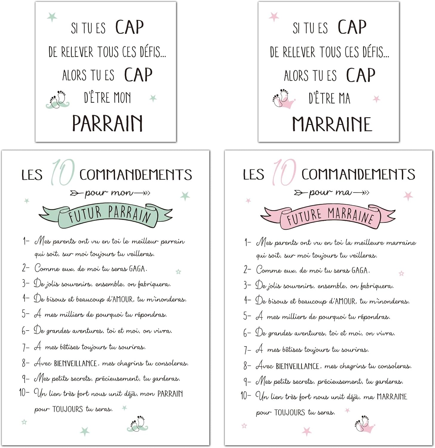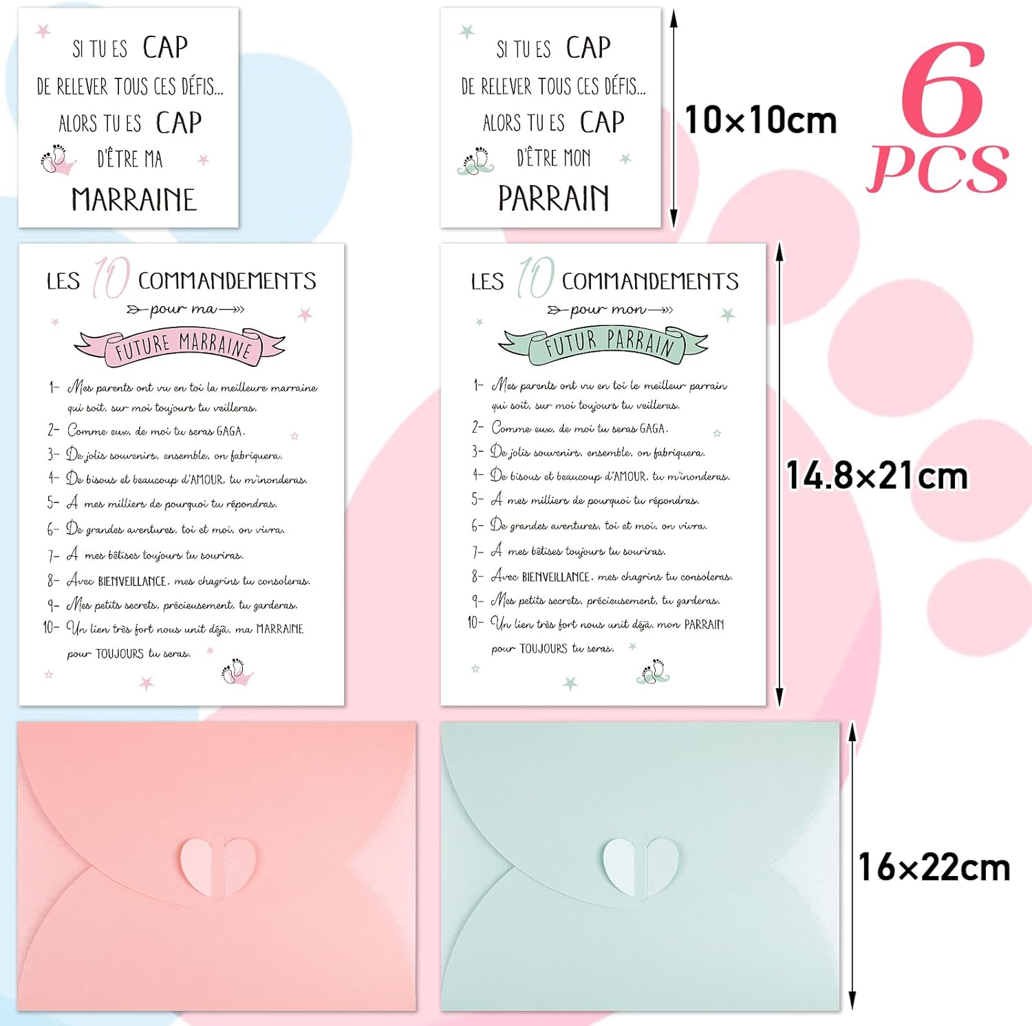 Il pacchetto include: 2 fogli di carte Padrino + 2 fogli di carte Madrina + 2 buste rosa e verdi. Materiale: carta. Formato carta piccola: 10*10 cm. Dimensioni della carta grande: 14,8 * 21 cm. Formato busta: 16*22. Si prega di confermare la dimensione in dettaglio nella foto. Gli elementi dei piedini e il colore rosa e verde, stampati in formato A5 su carta spessa, sorprendono i tuoi bambini con questa magnifica cartolina. La busta può essere personalizzata con il nome e la data del battesimo, e può contenere anche piccoli regali o piccoli oggetti. Perfetto come piccolo regalo esclusivo ed originale per i padrini nel giorno del battesimo. Oltre che in occasione del battesimo, anche per compleanni, Natale, annunci di nascita, richieste dei padrini ecc.