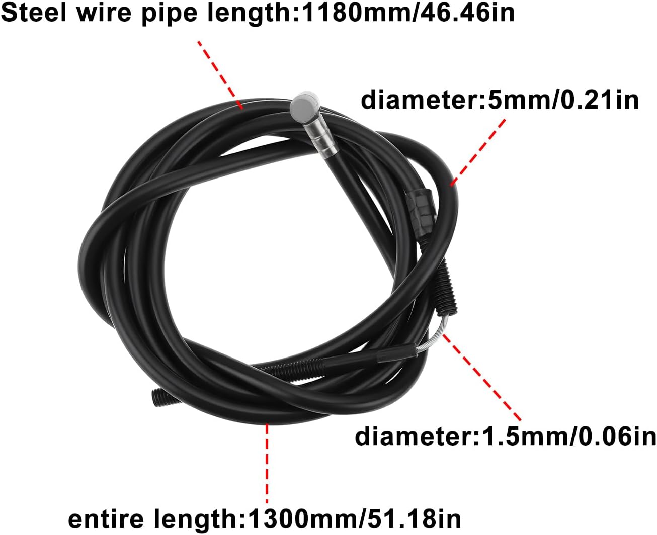 Compatibile con Ninebot MAX G30D, G30D2 e G30LD modelli di monopattino elettrico . Progettato come cavo freno sostitutivo diretto per l'impianto frenante posteriore. La lunghezza della linea è di 130 cm, con un diametro del nucleo del filo di 1,5 mm, un diametro del tubo del filo di 5 mm e una lunghezza del tubo del filo di 118 cm. Realizzato in filo di acciaio con rivestimento in plastica per garantire durevolezza e flessibilità. Facile da installare e adatto per la manutenzione o la riparazione quotidiana.