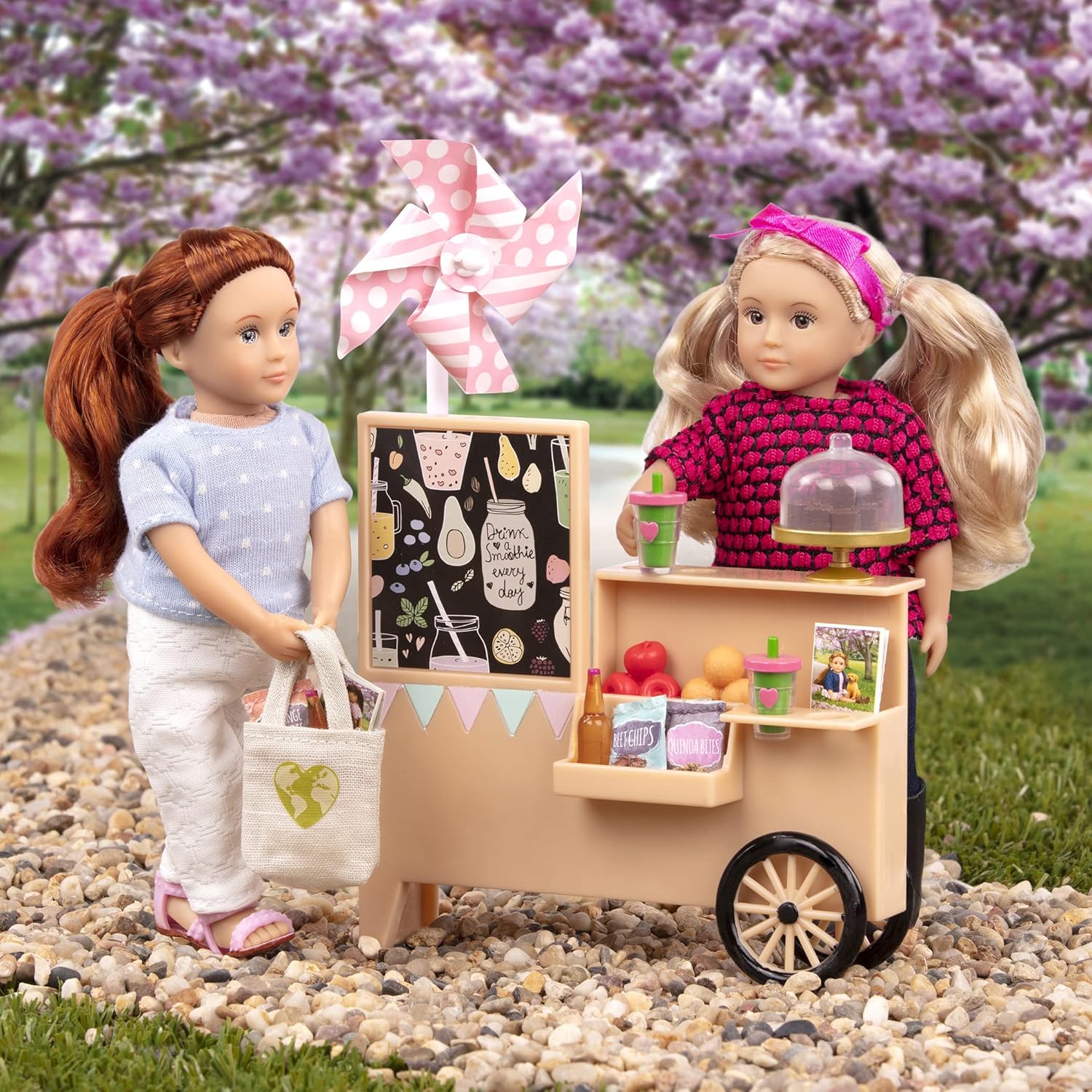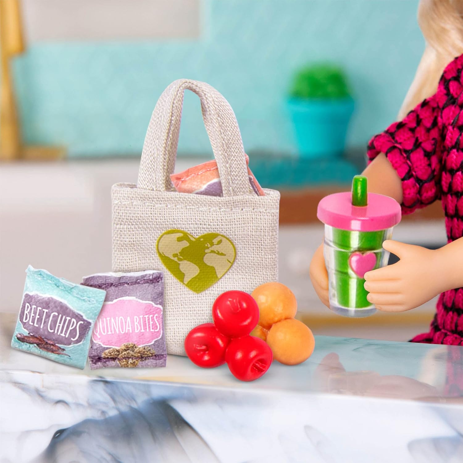 Il set include un camion degli snack, arance, mele, brownies, girandole, supporto per torte a cupola, succhi di frutta, snack, bevande, riviste e borsa della spesa. Età: consigliato per bambini dai 3 anni in su (parti piccole). Gioco facile: questi accessori da viaggio sono facili da tenere in mano, giocare e vivere avventure!