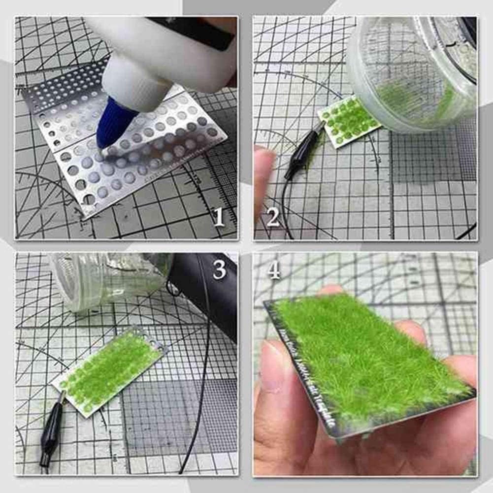 4. Premere la superficie della piattaforma di destinazione con il connettore elettrico 'elettrodo negativo, il più vicino possibile, quindi utilizzare la piantatrice di erba per iniziare a spruzzare la polvere di erba a 2-3 cm piattaforma di destinazione. 3. Nel modello bersaglio e terra, il lattice viene disegnato e applicato in modo uniforme, pronto per iniziare a cospargere di polvere di erba 1. Caricare la batteria uso e controllare se i fili nel contenitore sono in contatto con , che è la fase di ispezione chiave 2. Metti la polvere di erba. Si suggerisce che la lunghezza della polvere di erba superiore a 5 mm, il che è più efficace. Quindi stringere il coperchio. 5. Dopo completato la polvere di erba, la polvere di erba aggiuntiva o utilizzare un modello di aspirapolvere per l'. Tagliare il pagliaio con piccole forbici e stuzzicadenti fino a non cresce uniformemente.