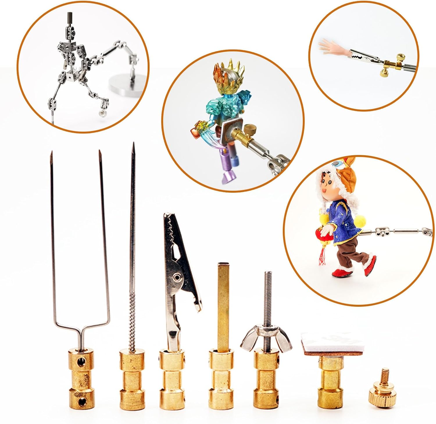 Set di armature Stop Motion: libera la tua creatività con il braccio di sollevamento di questo kit, progettato per movimenti complessi e realistici con figurine, spugne, modelli in argilla, cotone, carta, foglie, bambole e miniature. Compatibilità versatile: con una lunghezza del braccio di circa 25 cm, il braccio di rigging presenta tre livelli regolabili, migliorandone la versatilità. Dotato di cinque diversi tipi di connettori, puoi facilmente scegliere quello giusto per le tue esigenze specifiche. Raccordo durevole in acciaio inossidabile: realizzato in acciaio inossidabile lavorato a CNC, questo sistema di rigging consente un movimento fluido, preciso e fluido. Il braccio regolabile supporta carichi di circa 100 grammi quando è completamente esteso e tra 100 e 180 grammi in una posizione non completamente estesa. Montaggio semplice: anche se i bracci del trapano vengono forniti smontati, il set include una chiave a brugola e una chiave inglese per una facile installazione. Segui le istruzioni passo passo per costruire il tuo trapano con facilità. RISULTATI DI ANIMAZIONE PROFESSIONALE - Ideale per principianti ed animatori esperti, questo sistema di rigging dell'armatura è facile da montare e regolare. Le cinque porte offrono un'ampia compatibilità con vari personaggi e modelli e aprono possibilità creative illimitate.