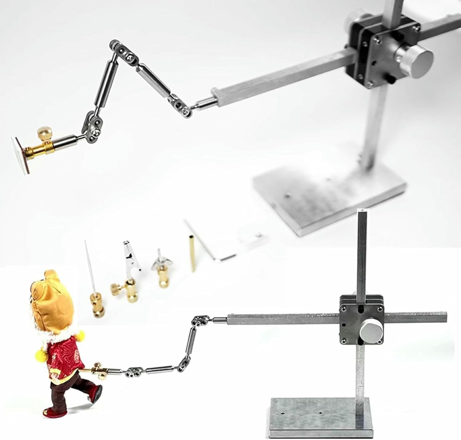 Configurazione semplice: questo kit di armatura stop motion fai-da-te presenta un processo di assemblaggio intuitivo che consente ai creatori di concentrarsi sulla propria visione artistica anziché sui dettagli tecnici e migliorare l'efficienza del flusso di lavoro. Impianto di animazione stop motion professionale: ideale per aspiranti animatori e professionisti, questo supporto per animazione stop motion riduce al minimo le vibrazioni per garantire riprese fluide e di alta qualità per tutti i tuoi progetti di animazione. Binario di guida bidirezionale: il supporto per animazione ad alta precisione offre una lunghezza verticale di 16 cm e una lunghezza orizzontale di 40 cm. Il braccio del trapano include tre livelli di regolazione e cinque tipi di connettori per supportare il movimento versatile del personaggio. Design robusto e regolabile: realizzato con materiali durevoli, questo rig avvolgitore verticale offre stabilità e consente un posizionamento preciso, garantendo acquisizioni di fotogrammi coerenti e accurate durante le animazioni. Applicazioni versatili: oltre all'animazione stop motion, questo supporto è adatto per video time-lapse, riprese dall'alto, fotografie di prodotti e altro per soddisfare una varietà di esigenze creative.