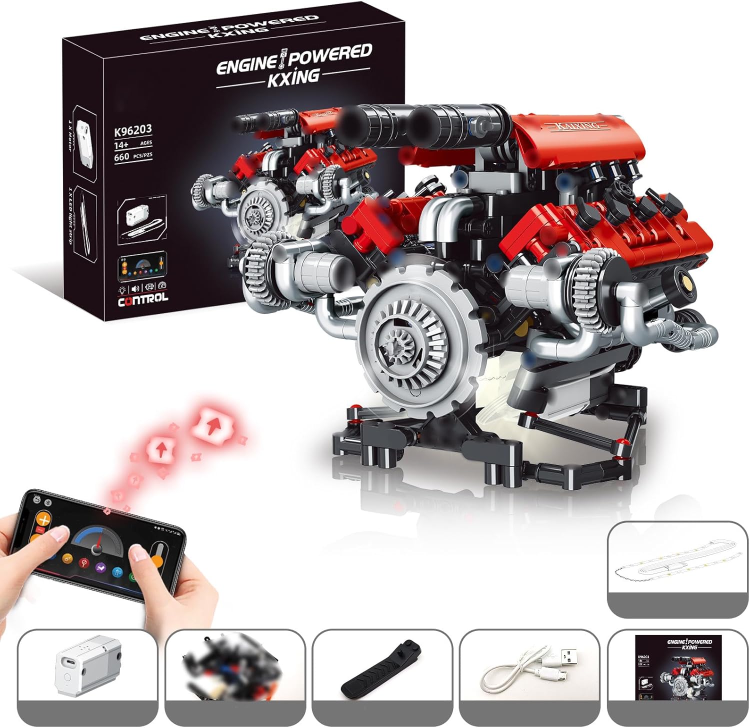 Elevata autenticità meccanica: questo kit motore V8 ricrea la struttura del motore in grande dettaglio e mostra tutti i componenti meccanici, dal cilindro e pistone alla catena di trasmissione. In questo modo viene illustrata chiaramente la funzionalità di un motore a combustione interna e i giocatori acquisiscono una comprensione più profonda della struttura meccanica delle macchine motrici. Esperienza interattiva intelligente: questo kit modello di motore per auto fai-da-te supporta il controllo remoto tramite telefono cellulare, consentendo ai giocatori di simulare l'avvio e il funzionamento del motore. Questo risolve il tradizionale gameplay statico e aggiunge divertimento interattivo collegando i comandi virtuali alle macchine reali. Design realistico: questo set di modelli di motore V8 per adulti presenta un sistema di trasmissione a catena meccanica simulato. Il design trasparente della testata rivela la coordinazione meccanica interna e l'esclusivo meccanismo della valvola. Una funzione di collegamento dell'acceleratore consente di spostare le valvole su e giù. Display impressionante: questo set per esperimenti meccanici STEM colpisce per i componenti illuminati e il design meccanico. Una volta assemblato, diventa sia un modello meccanico giocabile che un display tecnologicamente avanzato. È una decorazione da scrivania accattivante e creativa che mette in mostra l'estetica delle macchine e i risultati della costruzione creativa. Valore educativo: questo modello di motore V8 fatto in casa insegna conoscenze meccaniche e principi fisici, rendendolo uno strumento di apprendimento STEM adatto. Aiuta gli adolescenti dai 14 anni in su a comprendere la logica dei processi meccanici e a migliorare le loro capacità pratiche e cognitive.