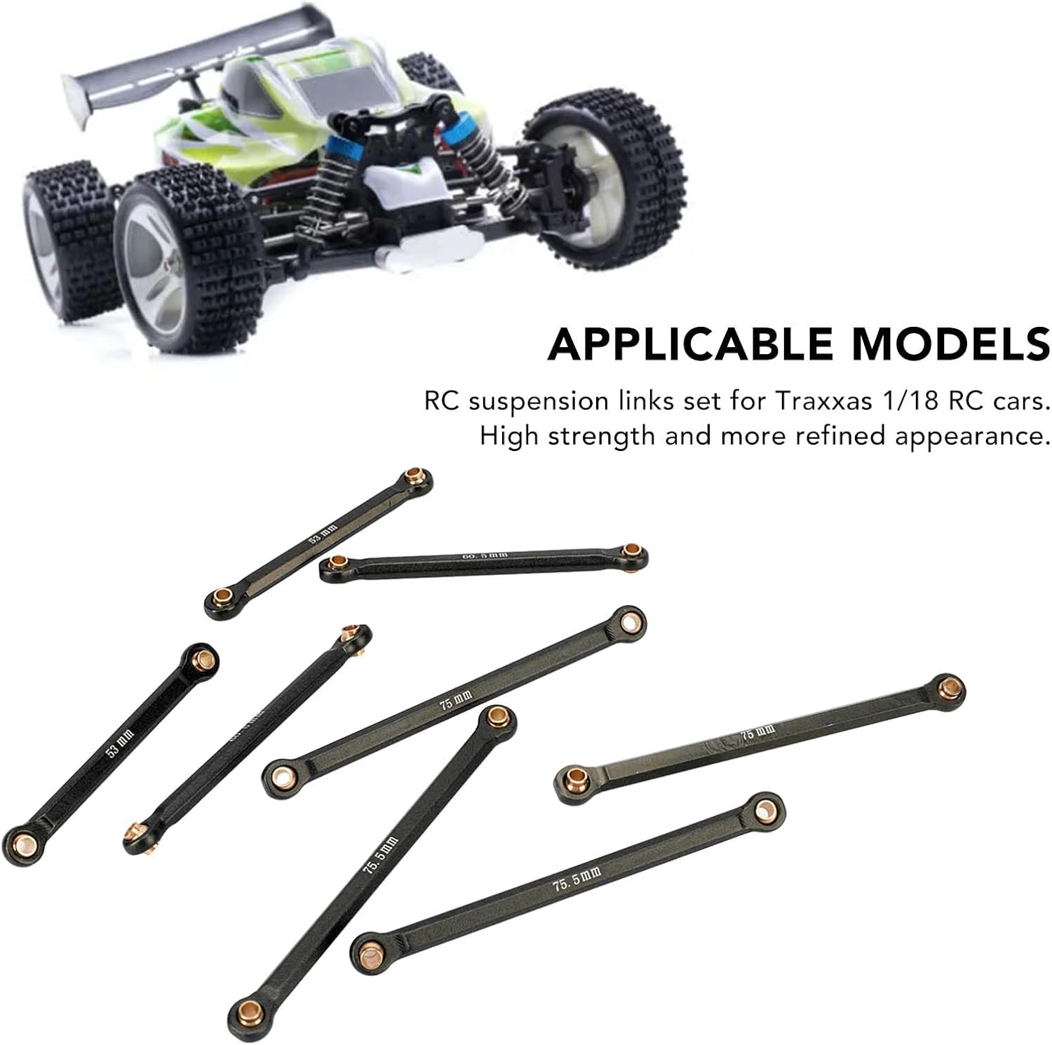 【Materiale di alta qualità】 Realizzato in robusta lega di alluminio lavorata a CNC, questo set di collegamenti di sospensione RC per veicoli in scala 1/18 vanta robustezza. Resistente alla ruggine, questo kit di collegamento di alta qualità è progettato per resistere ai rigori delle avventure fuoristrada, garantendo prestazioni raffinate e durature 【Facile da usare】 L'uso strategico della lega di alluminio nella costruzione di questo kit di collegamento per aste RC garantisce robustezza e resistenza all'usura. Leggero ma resistente, questo aggiornamento non appesantirà la tua auto, permettendoti di spingere i limiti del tuo veicolo telecomandato senza comprometterne la manovrabilità e la stabilità 【Prestazioni stabili】 Progettato con una struttura robusta e stabile, questo kit di collegamento per aste RC in lega di alluminio offre prestazioni costanti. Progettati per resistere alla deformazione, questi collegamenti delle sospensioni forniscono una guida equilibrata e composta, migliorando l'esperienza di guida complessiva e ispirando fiducia anche sui terreni più impegnativi 【Integrazione perfetta】 Progettato per un'installazione e una rimozione senza sforzo, questo kit di collegamento asta RC semplifica il processo di aggiornamento, consentendoti di migliorare rapidamente e facilmente le prestazioni della tua auto in scala 1/18 【Integrazione perfetta】 Progettato per un'installazione e una rimozione senza sforzo, questo kit di collegamento asta RC semplifica il processo di aggiornamento, consentendoti di migliorare rapidamente e facilmente le prestazioni della tua auto in scala 1/18