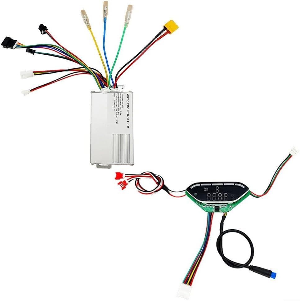 Sostituzione controller scooter elettrico: specificamente progettato per scooter elettrici E9T, questo kit controller 17A 36V 350W fornisce una sostituzione diretta per componenti danneggiati o malfunzionanti, ripristinando le prestazioni del tuo scooter con potenza compatibile e funzionalità di visualizzazione. Kit completo di display e controller: la confezione include sia le unità di misurazione (89 x 41 mm) che di controller (87 x 53 x 29,7 mm), offrendo una soluzione completa per gli aggiornamenti simultanei del sistema di visualizzazione e controllo senza dover acquistare parti separatamente. Costruzione in lega di alluminio di lunga durata: dotato di un robusto alloggiamento in lega di alluminio che resiste all'usura e, questo kit di controller mantiene un funzionamento affidabile anche in caso di uso prolungato e varie condizioni di guida all'aperto. Processo di installazione semplice: con la sua struttura semplice e il design plug-and-play, questo kit di ricambio può essere installato rapidamente utilizzando strumenti di base, rendendolo perfetto per gli appassionati di fai da te che cercano una soluzione di manutenzione senza problemi. Esperienza di guida migliorata: ripristina il monitoraggio accurato della velocità, l'indicazione del livello della batteria e il controllo regolare dell'accelerazione, assicurando che il tuo scooter E9T funzioni con la sua reattività e affidabilità originali per gli spostamenti quotidiani o per l'uso ricreativo.