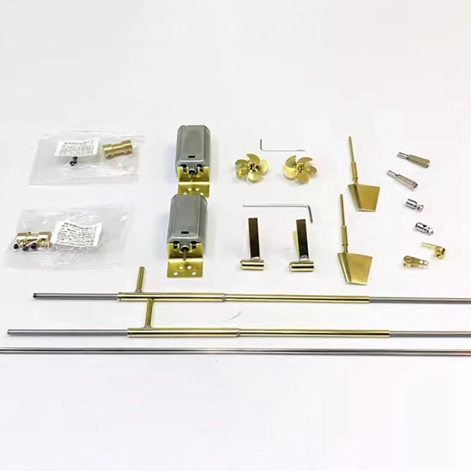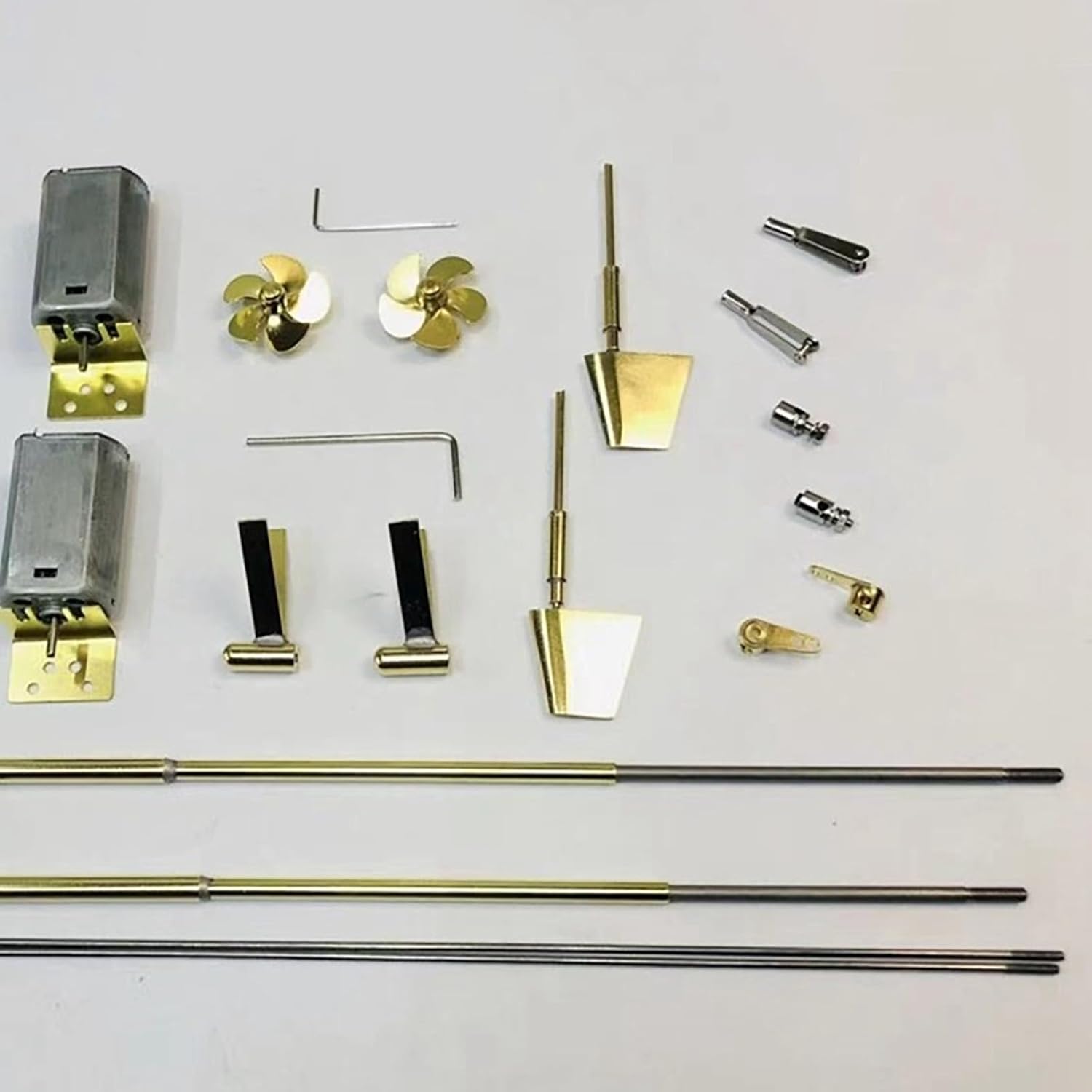 Kit di conversione completo: include tutti i componenti necessari for la conversione. for i dettagli, fare riferimento alle immagini del prodotto. Materiali di prima qualità: realizzati principalmente in ottone e acciaio inossidabile for una maggiore durata e resistenza alla corrosione. Lavorazione di precisione: realizzata mediante saldatura a stagno for garantire resistenza e prestazioni durature. Specifiche motore e albero: dotato di motore 283, albero in acciaio inossidabile da 3 mm x 280 mm e manicotto dell'albero tipo 53 x 160 mm for una propulsione affidabile. Componenti dell'pagaia e dello sterzo: presenta un'pagaia in ottone a 5 pale da 24 mm, un telaio a V a doppio braccio tipo 63, un manicotto del timone di classe Burke da 15 mm, un braccio singolo a doppio foro e un giunto 2x2.