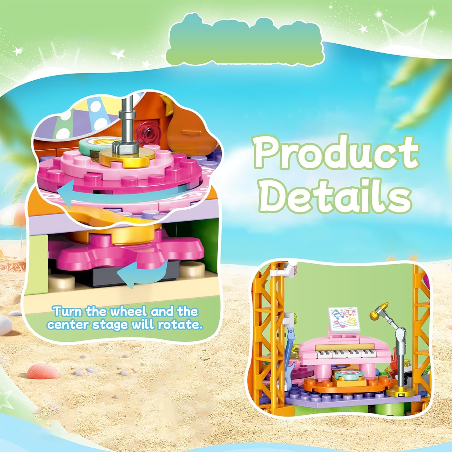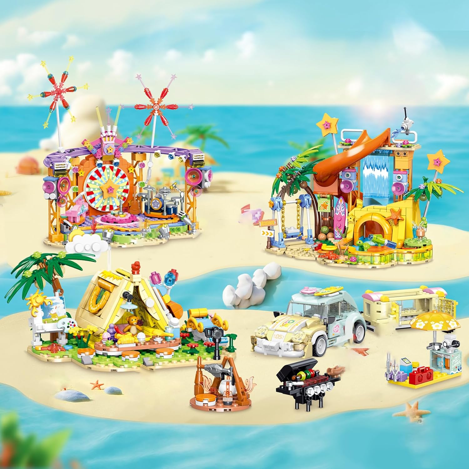 Set di blocchi da costruzione della serie Beach: include parco sulla spiaggia, tenda da spiaggia, palcoscenici stellari e camper da spiaggia, con forme uniche, colori intensi e dettagli squisiti. Facile da montare con un'atmosfera molto estiva, adatta a bambini dai 6 anni e adulti. Materiale di alta qualità: realizzato in materiale ABS di alta qualità, plastica atossica e resistente, rispettosa dell'ambiente. Le superfici lisce e gli angoli arrotondati consentono un collegamento facile e veloce tra ogni piccola parte. Presenza raffinata e gioco stimolante: funge da decorazione attraente per la tua famiglia o ufficio e aggiunge vivacità alla tua collezione. Stimola l'immaginazione. Regalo ideale per adulti e bambini: bellissima confezione con istruzioni dettagliate. È un regalo perfetto per compleanni, Natale e altre festività, sia per te che per la famiglia e gli amici. Servizio soddisfacente: questo kit di elementi costitutivi viene fornito con parti di ricambio. Tuttavia, se durante la costruzione trovi parti mancanti, non esitare a contattarci. Ti risponderemo e ti offriremo una soluzione soddisfacente.