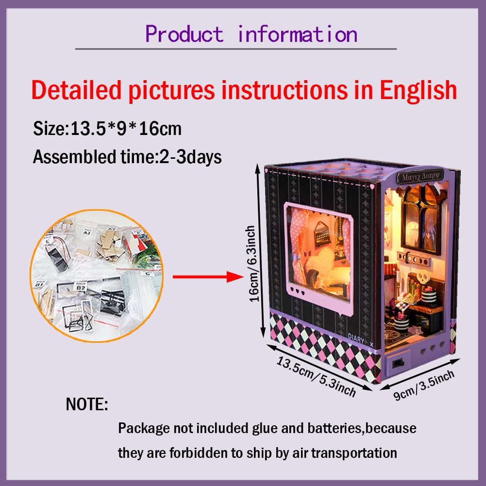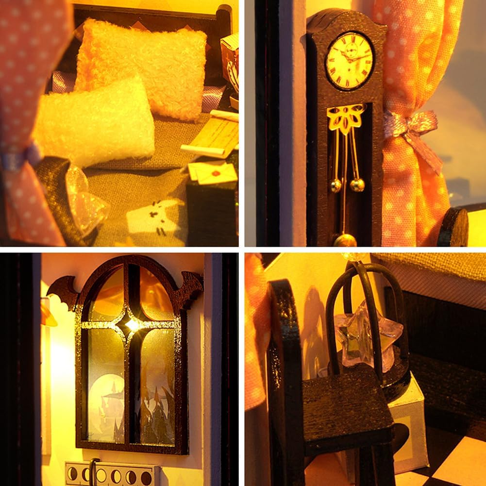 Una guida in inglese con immagini dettagliate e colorate ti accompagna passo dopo passo ed è facile da montare con un po' di pazienza. Le nostre cabine fai-da-te sono di alta qualità e i mobili e le altre parti in legno sono tagliati con precisione per adattarsi correttamente. Luci a LED, piante, decorazioni e mobili sembrano molto realistici e artistici. La casa dei giocattoli è adatta a persone di età superiore ai 14 anni. I bambini sotto i 14 anni necessitano dell'assistenza di un adulto per completare. L'assemblaggio richiede pazienza. Migliora la tua creatività. È il regalo perfetto e significativo per i tuoi amici, bambini, amanti e genitori. A causa dei tempi di spedizione lunghi, l'articolo potrebbe danneggiarsi durante il trasporto, se l'articolo è danneggiato, ti preghiamo di contattarci immediatamente prima di lasciare un feedback, grazie per la tua comprensione.