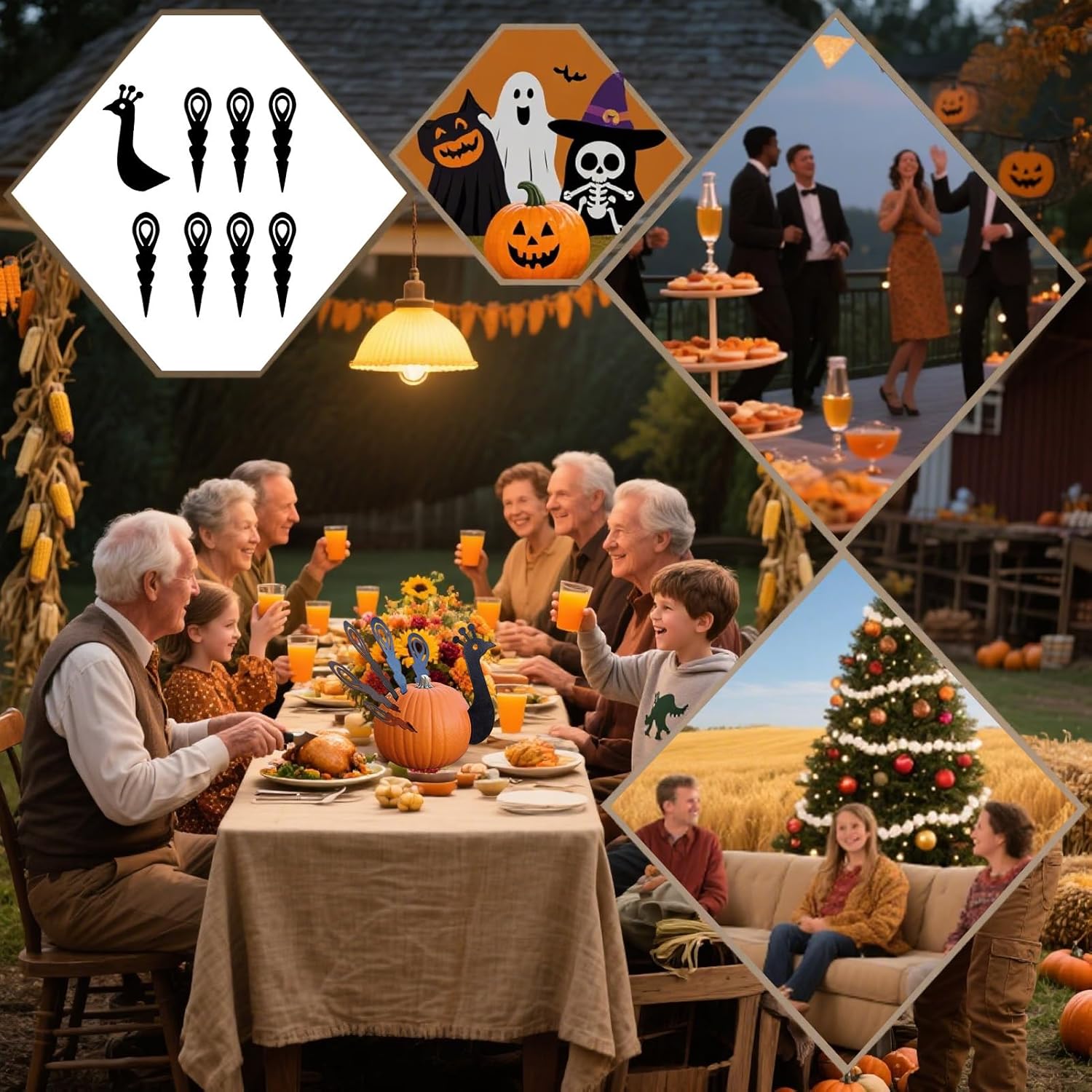 Durata eccezionale: con il suo design riutilizzabile e una manutenzione semplice e pulita, questo kit garantisce una notevole longevità per anni di utilizzo stagionale. Resistenza affidabile dei materiali: caratterizzato da un robusto materiale in ferro che previene piegature o rotture, preservando l'integrità strutturale per tutta la sua durata. Facile decorazione della zucca: con il suo sistema di inserimento istantaneo e l'eliminazione dei rischi, questo kit consente un'attività familiare sicura senza bisogno di abilità di intaglio, in modo che tutti possano partecipare senza sforzo. Miglioramento festivo: eccelle nell'arte di trasferire le decorazioni del Ringraziamento e di Halloween con un integrazione estetica autunnale coerente, abbinata a un'infusione di caldo fascino stagionale, per esposizioni diverse ed eleganti per le vacanze del raccolto. Stravagante creazione di display festivi: migliora l'arredamento della tua tavola autunnale con questo set di tacchini in metallo da 8 pezzi, trasformando le zucche in centrotavola stravaganti che ispirano il Ringraziamento e creano un'atmosfera festosa senza sforzo con il suo stile autentico