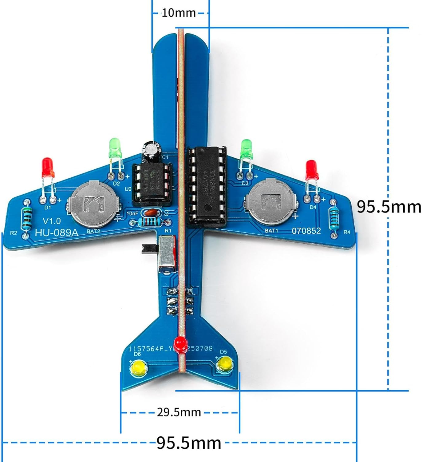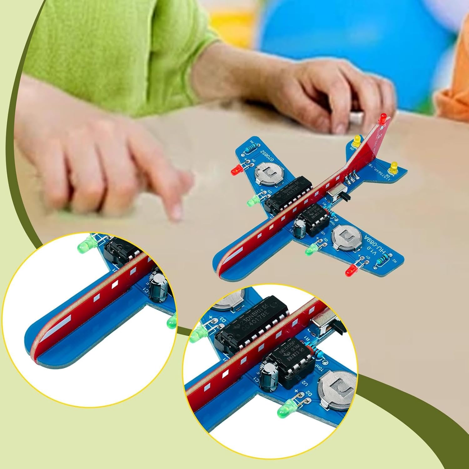 【Decorazione da scrivania】: questo aereo a LED tra le tue mani, proiettando un bagliore affascinante nel tuo spazio. Ideale per il posizionamento in soggiorno o sulla scrivania, funge anche da decorazione. 【Facile da montare】: Progettato per la semplicità, questo kit è facile da montare e utilizzare, rendendolo adatto sia ai principianti che agli hobbisti esperti 【Kit di pratica per la saldatura elettronica】: può essere utilizzato non solo per esercitarsi nella saldatura per appassionati di fai da te elettronico, ma anche per corsi pratici di insegnamento e fabbricazione. È adatto a tutti appassionati di elettronica e a coloro che desiderano apprendere le tecniche di saldatura. 【Materiale】: Realizzato con materiali di qualità, che garantiscono durata e longevità. Kit di circuiti per aeroplani lampeggianti fai da te, kit di componenti per l'assemblaggio di circuiti stampati per la pratica della saldatura elettronica a luce . 【Design innovativo dell'aeroplano】: questo kit fai-da-te presenta una forma di aeroplano unica, rendendolo divertente e pratico per appassionati di elettronica e studenti