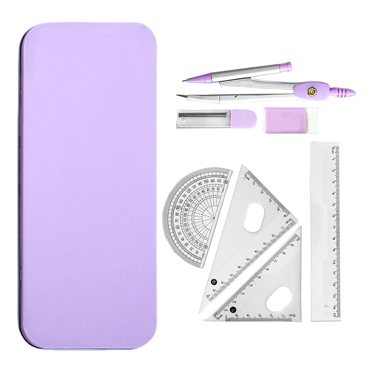 Materiali durevoli: grazie all'uso di materiali robusti e di alta qualità, questo kit di geometria matematica offre una durata senza precedenti sia per studenti che per professionisti. I materiali selezionati garantiscono precisione e sicurezza in ogni utilizzo Versione straordinaria: realizzato con eccellente maestria, questo kit di geometria matematica garantisce l'assenza di sbavature e lesioni alle mani, offrendo una lavorazione squisita per un utilizzo preciso e sicuro Ampia gamma di usi: kit di geometria matematica, materiale per studenti da 7 pezzi tra cui righello, goniometro, compasso, matita e gomma, è ampiamente utilizzato per misurazioni e disegni precisi Regalo pratico: questo kit di geometria matematica è un'idea regalo speciale per uomini e donne, perfetta per aggiungere un tocco speciale a qualsiasi festività come Natale, Ringraziamento e compleanni Geometria adatta ai viaggi: grazie al design leggero e alla scatola di ferro infrangibile, questo kit di geometria matematica è perfetto da portare all'aperto e utilizzare in qualsiasi momento