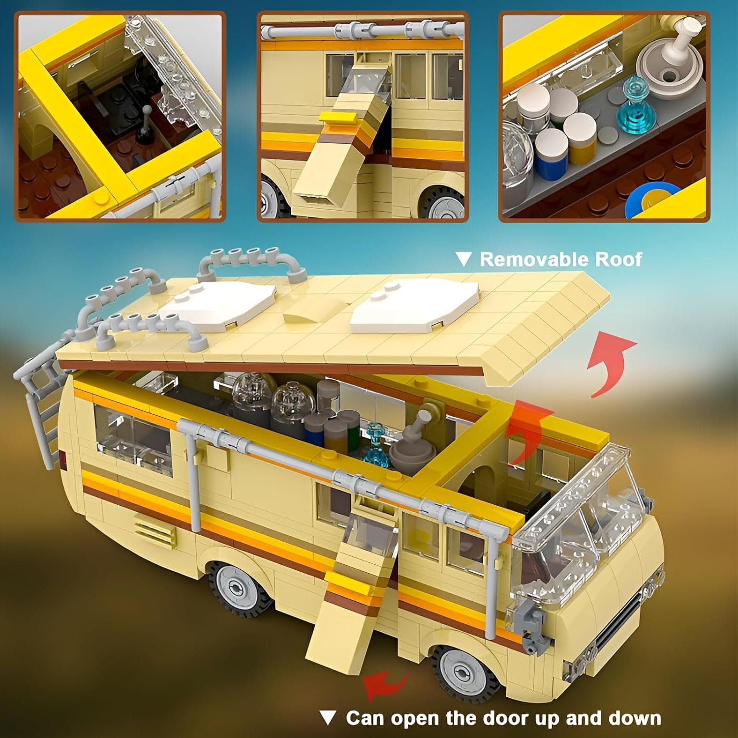 DESIGN ELEGANTE: rendendo omaggio alle scene della serie TV, questo kit di costruzione per camper è dotato di doppie porte sinistra e destra, un tetto rimovibile, utensili da cucina integrati, un contenitore per prodotti chimici e altre caratteristiche, oltre a un camino fumante, che ricrea vividamente gli scenari di utilizzo originali del camper. QUALITÀ PREMIUM: questo kit di costruzione per camper è realizzato in plastica ABS, ha una superficie liscia senza sbavature ed è sicuro e affidabile in termini di qualità. OTTIMA IDEA REGALO: questo modello di kit per camper è un regalo ideale per gli appassionati di cinema, i collezionisti di film e i giocatori che cercano kit unici. DIVERTENTE DA ASSEMBLARE: Che tu sia un bambino o un adulto, purché ami i camper e i kit, puoi divertirti ad assemblare e il prodotto finito può essere utilizzato anche come decorazione, souvenir e oggetto da collezione. OTTIMO ARTICOLO DA COLLEZIONE PER GIOVANI E ANZIANI: questi mattoncini per camper sono dotati di istruzioni a colori per aiutare i bambini a ricreare scene classiche. È un buon oggetto da collezione per bambini e adulti.