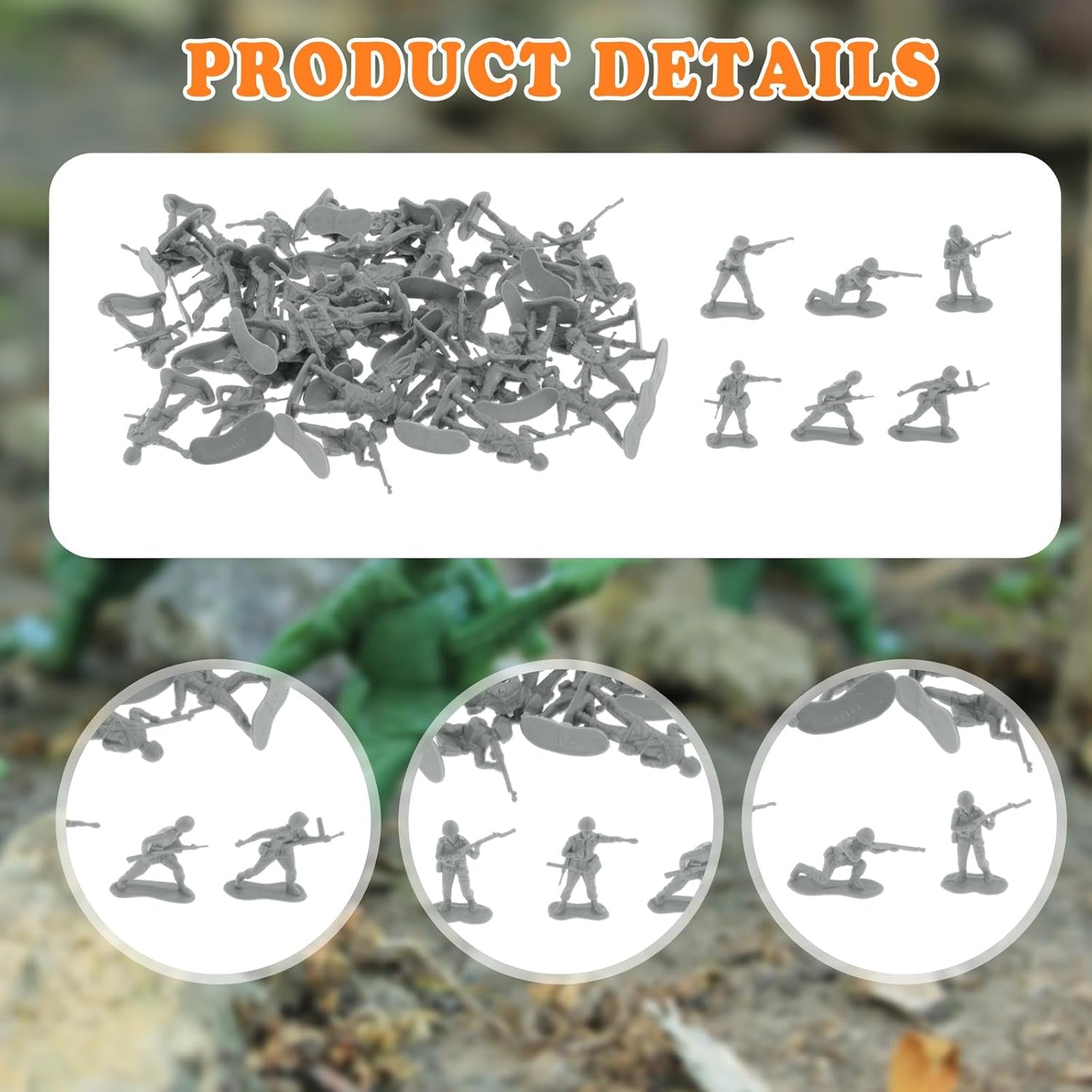 【Istruttivo e divertente】: incoraggia la creatività e il del tuo bambino consentendogli di disporre le figure dei mini soldatini in varie formazioni 【Set completo】: il pacchetto include 50 modelli di soldati in scala 1:35, fornendo ampi pezzi per creare diverse scene di battaglia o combinarli con altri set per un divertimento ancora maggiore 【Set di gioco coinvolgente】: questo kit di modelli di soldati in scala 1:35 è progettato con una varietà di pose di soldati, ottimo per creare scenari coinvolgenti 【Materiale premium】: realizzate in PP di qualità, queste statuette in miniatura sono progettate per resistere a ore di gioco mantenendo la loro forma e i loro dettagli 【Dimensioni adatte alle manine】: Ogni mini soldato è alto circa 4 cm-5 cm/1,57 pollici-1,97 pollici, il che lo rende facile da maneggiare e manovrare anche per le manine più piccole durante il gioco.