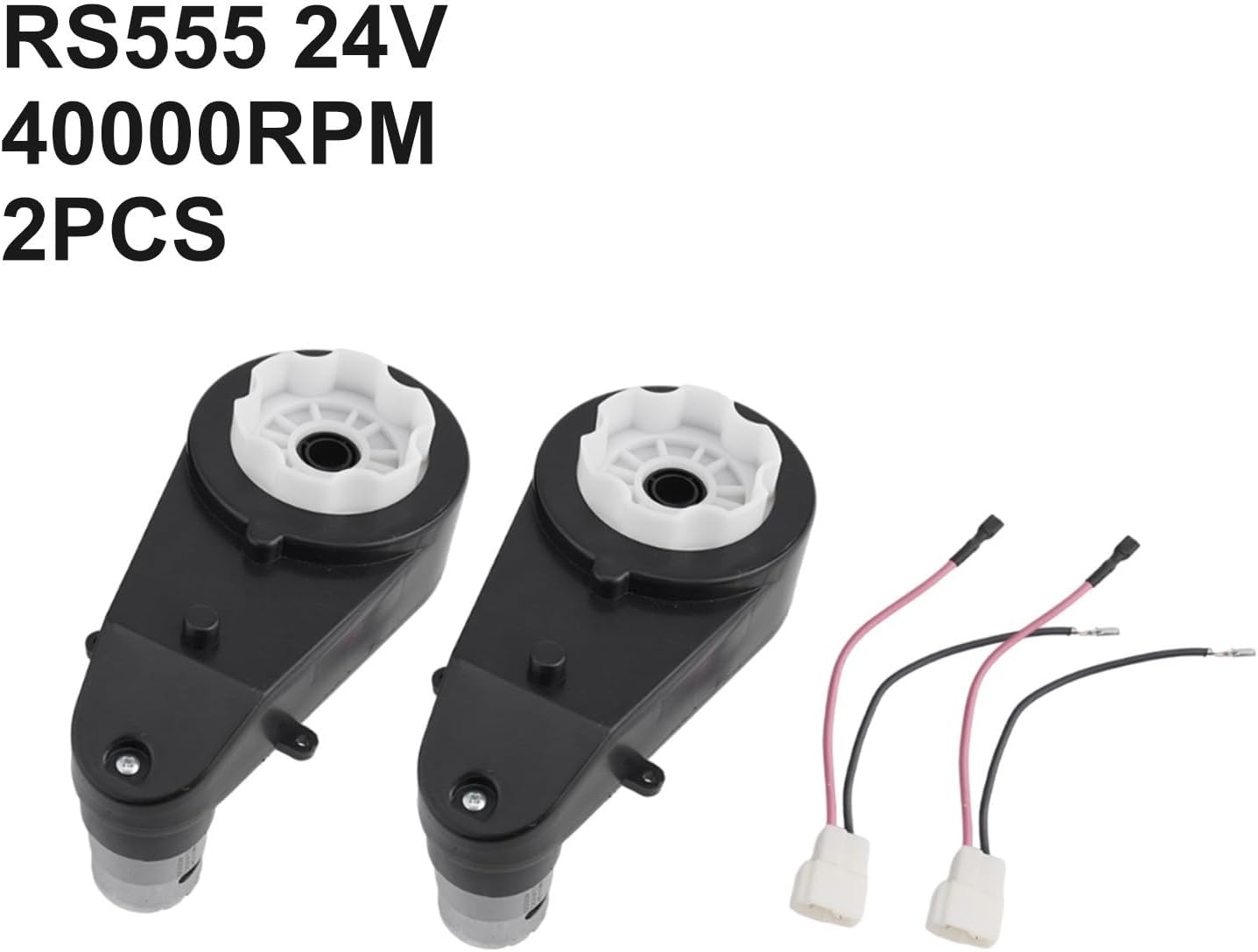 Potente ed efficiente: il cambio elettrico RS555 da 2 pezzi presenta un motore di azionamento da 200 W 24 V, fornendo una coppia elevata e prestazioni ad alta velocità. Con una velocità di rotazione di 40000 giri/min, offre potente ed efficiente per gli appassionati di cavalcate. Costruzione: realizzato con un pannello di plastica ad alta resistenza combinato con un motore, questo motore di azionamento da 24 V garantisce prestazioni affidabili e di lunga durata. I materiali utilizzati nella sua costruzione ne garantiscono durata e stabilità. Facile installazione: i connettori Quifor CK-change eliminano la necessità di saldatura, rendendo l'installazione senza problemi. Consentono l'installazione e la rimozione rapide delle scatole degli ingranaggi, fornendo comodità per gli utenti. Identificazione del numero di modello: gli acquirenti possono facilmente identificare il numero di modello dal motore, particolarmente adatto per scopi di modifica, in particolare per ottenere prestazioni di velocità più elevate. Questa funzione abilita le opzioni di personalizzazione per il motore. Specifiche tecniche: Contenuto della confezione: