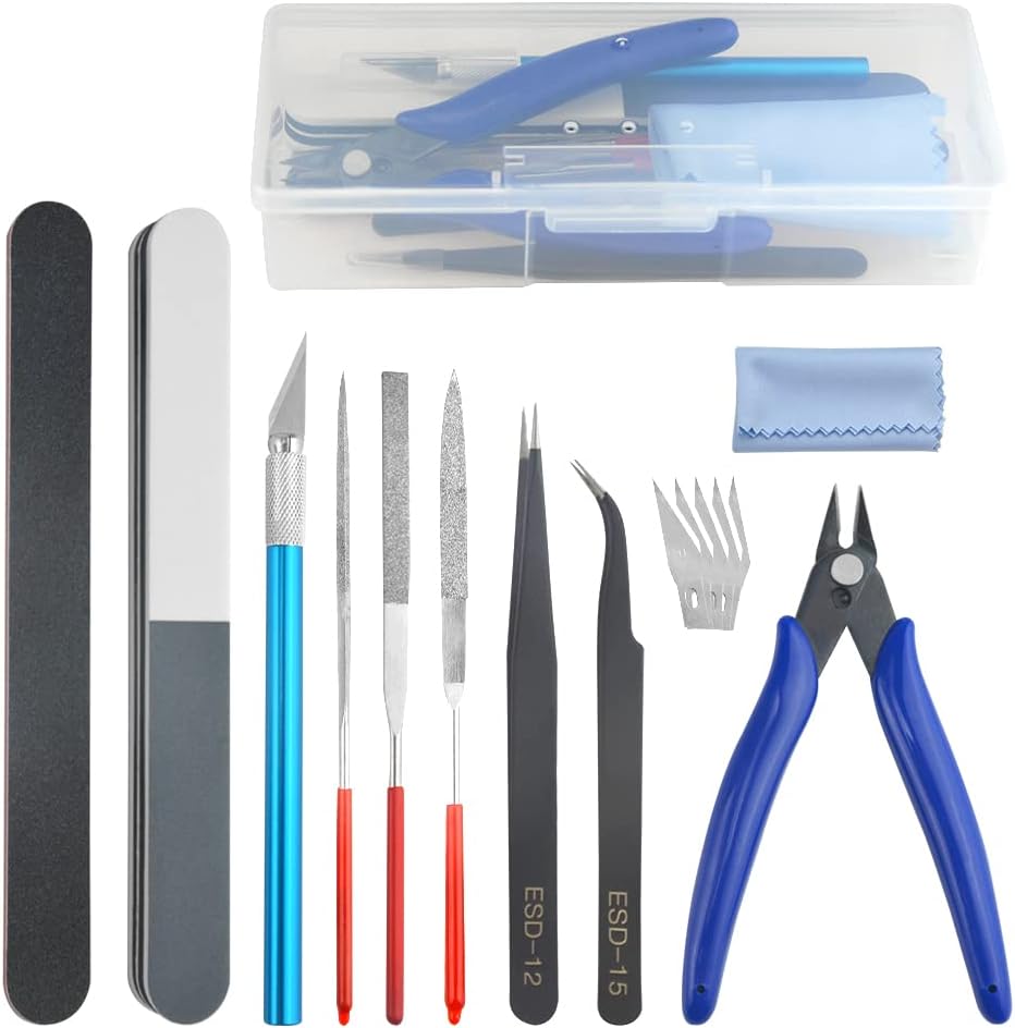 Il kit di attrezzi da costruzione include: 1 pinza laterale, 1 lima per modellini manuali, 1 coltello e 1 set di lame, 3 barre lucidate a doppia faccia, 2 pinzette, 1 scatola per riporre oggetti. E gli articoli sono protetti da una scatola di plastica in caso di danni. Soddisfa tutti i requisiti di base dei principianti. Ampia applicazione: questo set di strumenti di base è perfetto non solo per principianti e amanti del modellismo, ma anche per i produttori di modellisti e modelli. Si può utilizzare per costruire vari modelli di plastica di base come giocattoli, cartoni animati, mini casa delle bambole, robot, aereo, camion, auto, treno, navi di mayflower, ecc. Ben realizzato e di grande valore: questi strumenti in plastica hanno un ottimo rapporto qualità/prezzo, che è necessario ottenere se si inizia un modello di costruzione. Le pinzette sono ideali per i piccoli adesivi e per agganciare diverse parti insieme, che hanno un tappo di plastica per tenerli chiusi e impedisce che le punte vengano colpite e così come la penna del tagliabordi. La pinza laterale ha un taglio pulito e liscio, le cui impugnature sono rivestite con comoda gomma morbida. Inoltre, anche altre parti sono di alta qualità. Leggero e portatile: il kit di attrezzi Gundam è leggero. Quando li userai, ti sentirai più a portata di mano. Facile da trasportare e riporre, puoi costruire il tuo gundam in qualsiasi momento e ovunque. Non vedo l'ora di vedere il tuo capolavoro! Il miglior regalo: sei ancora confuso da quale regalo potresti presentare agli amici nella sua festa di compleanno? Forse questo set di strumenti sarebbe molto utile. Sarebbe molto bello usare questo kit per costruire un aereo per i tuoi amici. Un'altra scelta, potresti inviarla direttamente ai tuoi amici. Mentre ricevono il tuo dono, devono essere sorpresi dalle lacrime ben curate negli occhi. Il tuo regalo unico esprimerà il tuo amore unico.