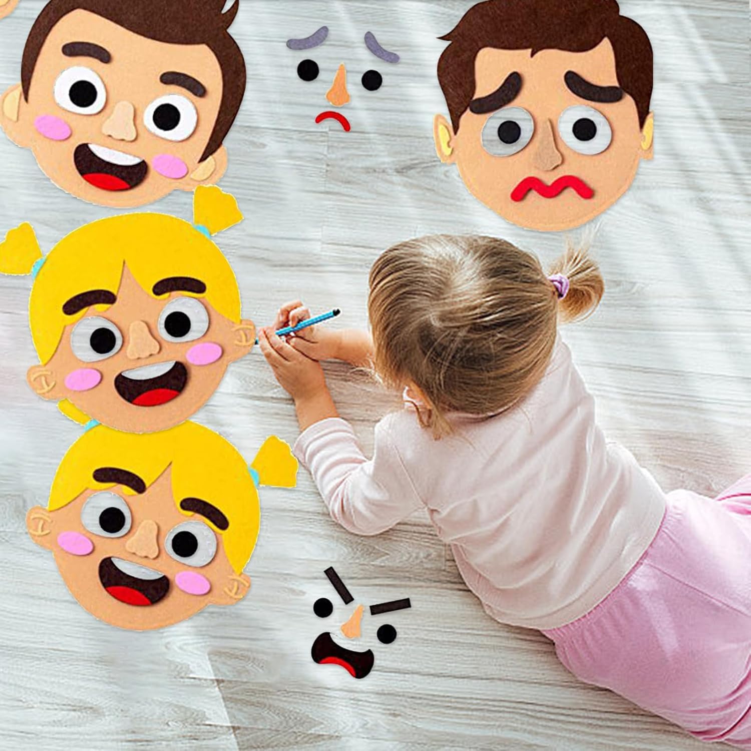 Aumenta l'immaginazione: partecipa ai bambini con questo gioco fai-da-te creativo che aumenta la loro abilità pratica, consentendo l'assemblaggio gratuito di una miriade di espressioni usando una serie di facciali. Competenze sociali arricchite: coinvolgi i bambini con i nostri adesivi in feltro, promuovendo un'esperienza interattiva multiplayer che migliora le abilità sociali, insegna cambiamenti emotivi e migliora l'empatia incoraggiando il gioco con gli altri. Aggiornamento dello sviluppo emotivo per bambini: gli adesivi per bambini offrono una piattaforma divertente in cui i bambini possono imparare a conoscere le emozioni attraverso il gioco. Questi adesivi servono come strumento importante per l'educazione emotiva, aiutando i bambini a esprimere i loro sentimenti e comprendere varie emozioni, promuovendo la loro intelligenza emotiva. Divertimento creativo sicuro: realizzato con materiale in feltro protettivo, i nostri adesivi sono privi di borse, resistenti all'usura e , garantendo ore di divertimento sicuro e creativo per i bambini. Dì addio alle lesioni e a piccole mani felici. Ampie applicazioni: ispirano i bambini a esplorare la loro creatività e immaginazione con i nostri adesivi per bambini. per l'interazione e la crescita a scuola, parco o casa.