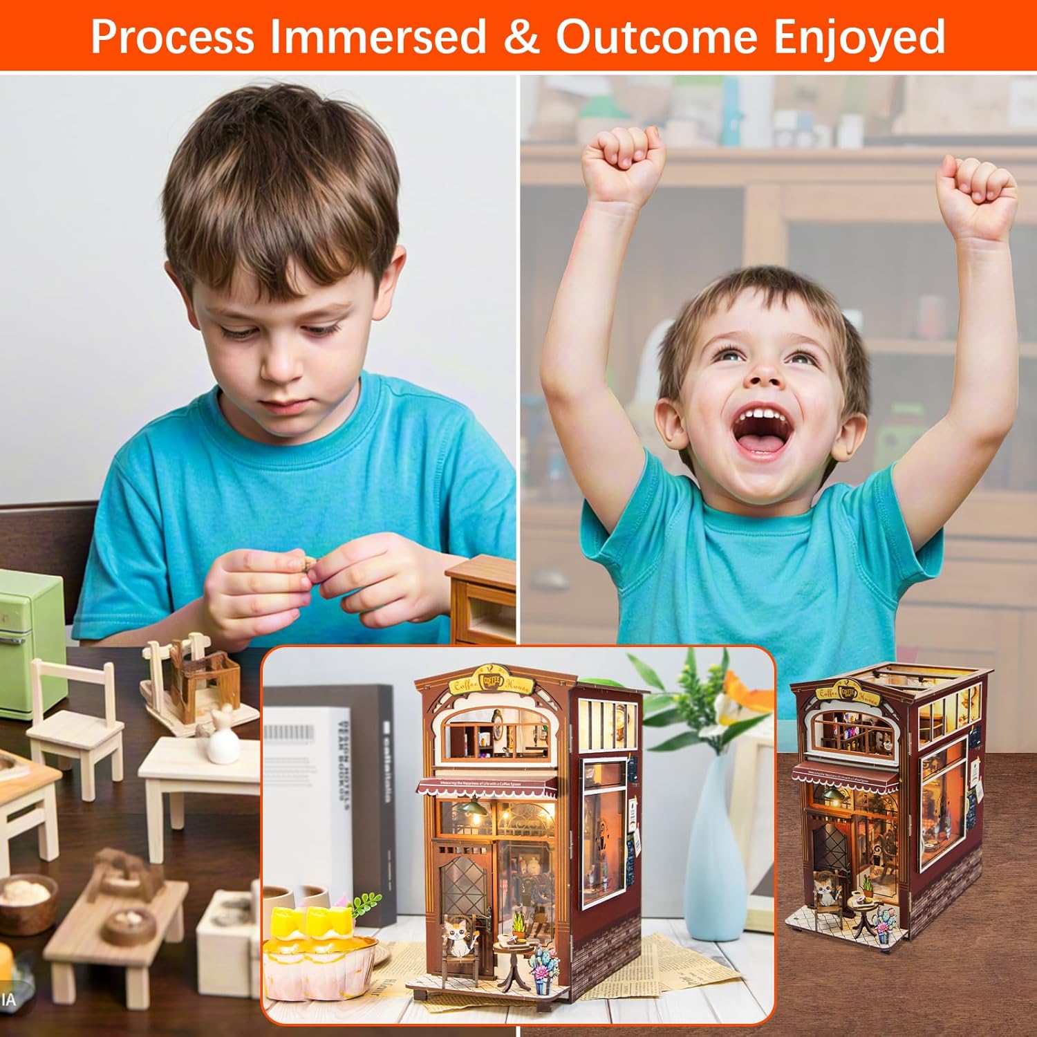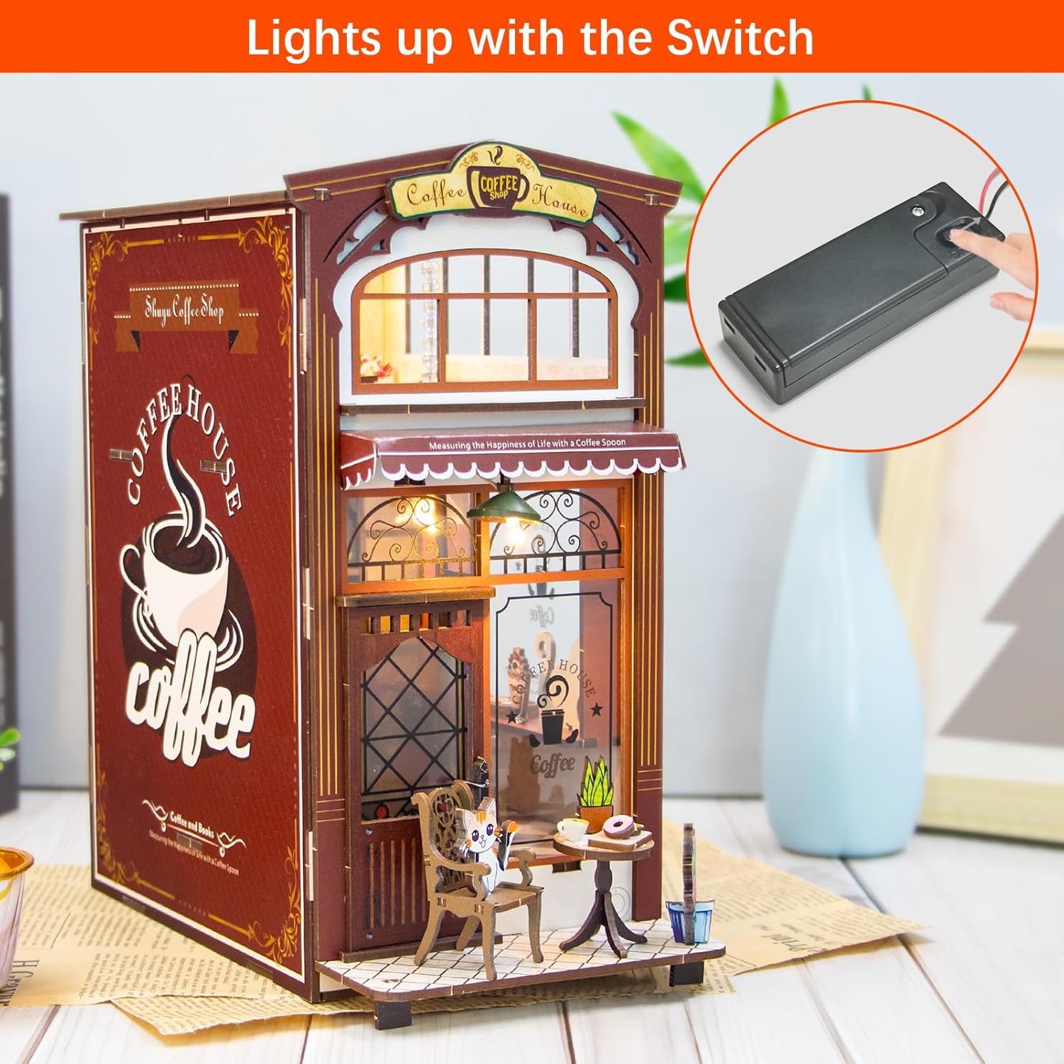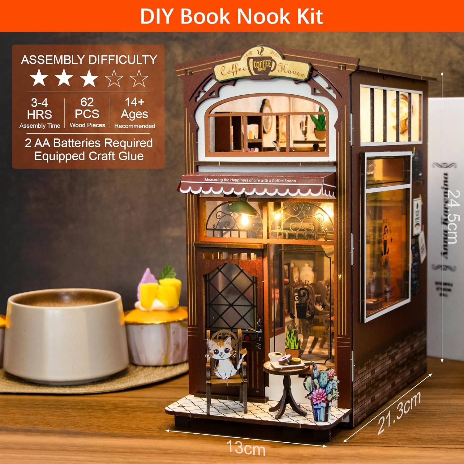 Adatto ai principianti: abbiamo progettato questo kit per angoli per libri fai-da-te appositamente per i principianti e gli amanti dei progetti di artigianato fai-da-te. Con istruzioni colorate e dettagliate, l'assemblaggio crea una libreria estremamente delicata e onirica. Una volta finito, non solo proverai una grande gioia, ma sarai anche orgoglioso del tuo senso di realizzazione auto-creato. Materiali premium e sicuri: la casa delle bambole in legno 3D è realizzata in legno di prima qualità. Grazie ai bordi senza sbavature e accuratamente lucidati, la tua pelle sensibile non verrà danneggiata - garantiamo un montaggio senza preoccupazioni Il materiale del puzzle 3D è completamente sicuro, inodore ed è caratterizzato da un'elevata resistenza alla flessione e alla rottura. Idea regalo perfetta: nessuno rifiuterà questo regalo creativo e affascinante! Questo kit per casa delle bambole in miniatura supera l'artigianato ordinario con la sua raffinata manifattura. Oltre al divertimento del fai-da-te, funge da decorazione elegante e durevole per qualsiasi stanza. In occasioni speciali come compleanni, anniversari o San Valentino, fai un regalo esclusivo ai tuoi cari, alla famiglia o agli amici - progettato con amore e pieno di cordialità. Accenti LED: questo kit di costruzione di case in miniatura fai-da-te è dotato di luci LED tangibili che emettono una luce calda e accogliente. L'illuminazione non solo mette in risalto i dettagli di design in filigrana, ma crea allo stesso tempo un'atmosfera accogliente. Così l'intera opera d'arte prende vita e riceve un fascino unico. Nota importante: ciascuno dei nostri prodotti è sottoposto a un controllo di qualità completo. Offriamo una garanzia di 2 anni senza preoccupazioni e un servizio clienti 24 ore su 24, 7 giorni su 7. Nota: per il funzionamento sono necessarie 2 batterie AAA (non incluse). Se i punti di collegamento risultassero instabili, si consiglia di utilizzare della colla per stabilizzarli