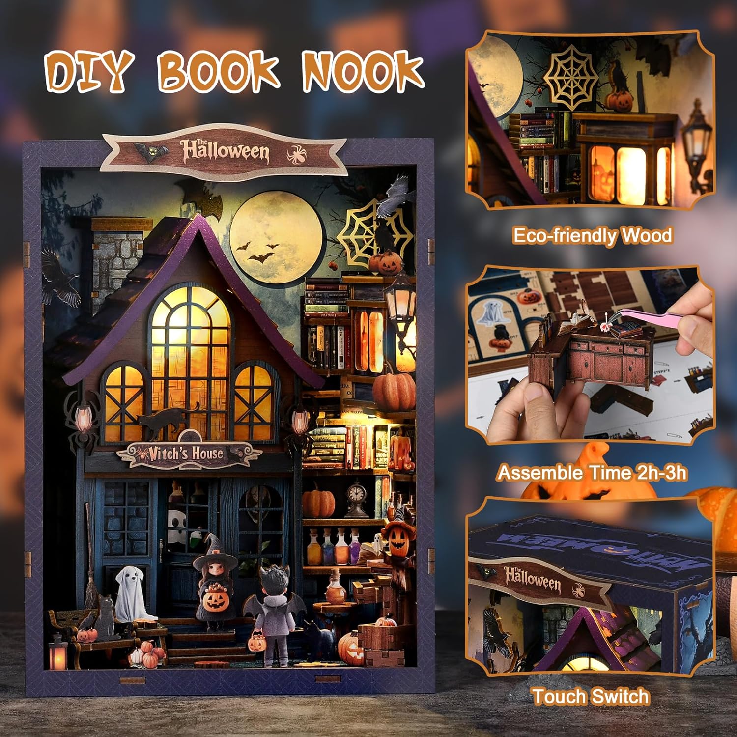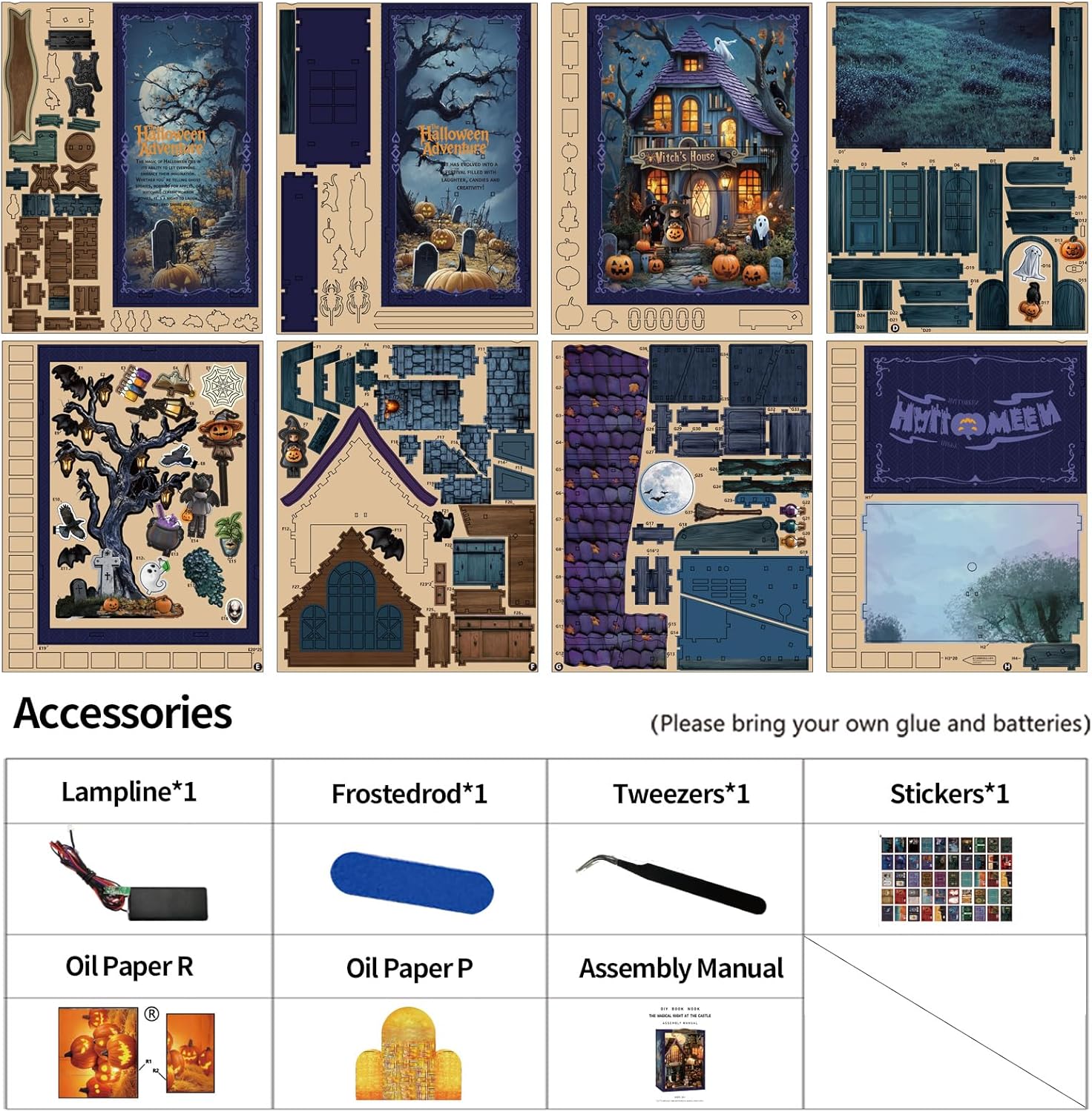【Alte Burg Magic Night】 Questo angolo di lettura per Halloween, dal design meraviglioso e creativo, è unico nel suo genere. Streghe e misteriosi vampiri danno vita al modellino del mini castello. Le luci LED integrate consentono di costruire e illuminare il proprio modellino magico del castello di Halloween. 【Facile da montare】 Materiale ecologico in legno, questi set sono realizzati con materiali atossici. Sono disponibili set in legno, carta, tessuto, plastica, metallo, ecc., tutti sicuri e riciclabili. 【Richiede pazienza e abilità manuali】 È un'attività divertente che permette di concentrarsi sull'assemblaggio, rilassarsi e alleviare lo stress di una giornata faticosa, lontano dai dispositivi elettronici e dalle faccende quotidiane. Crea un'esperienza coinvolgente che stimola la creatività e la giocosità. Divertiti a costruire e giocare con questa mini casa delle bambole fai da te! 【Scelta regalo unica】 Idea regalo perfetta per Natale, Ringraziamento, San Valentino, compleanni, per esprimere amore e apprezzamento alla tua famiglia, agli amici e alle persone che amano l'artigianato e le miniature. 【Valore di intrattenimento】 È un fantastico gioco per tutta la famiglia che bambini e genitori possono costruire insieme. Durante l'assemblaggio, i bambini possono dare libero sfogo alle loro capacità di progettazione e costruzione, allenando anche il loro pensiero logico e la loro pazienza. 【Nota】 Questo prodotto è adatto a persone di età superiore ai 14 anni. I bambini possono assemblarlo solo sotto la supervisione dei genitori.