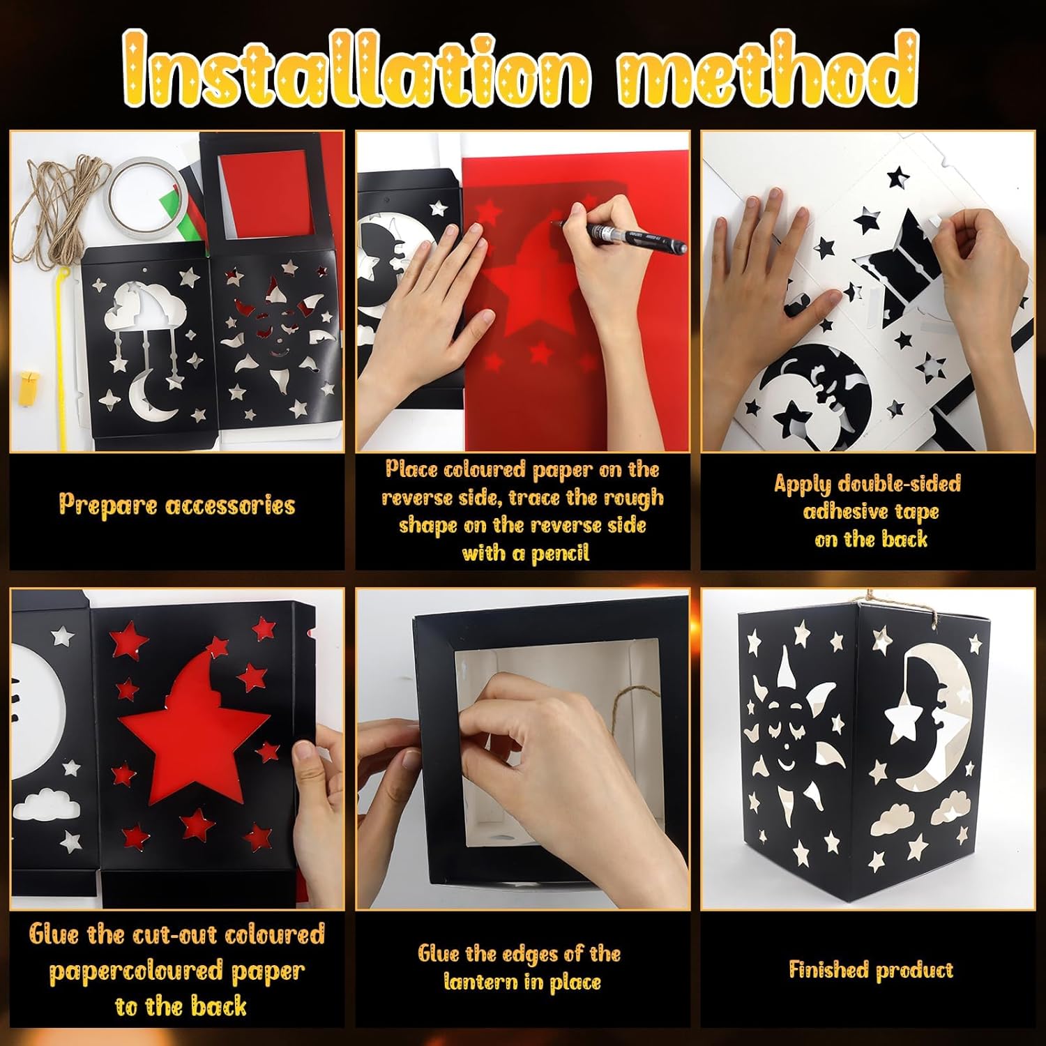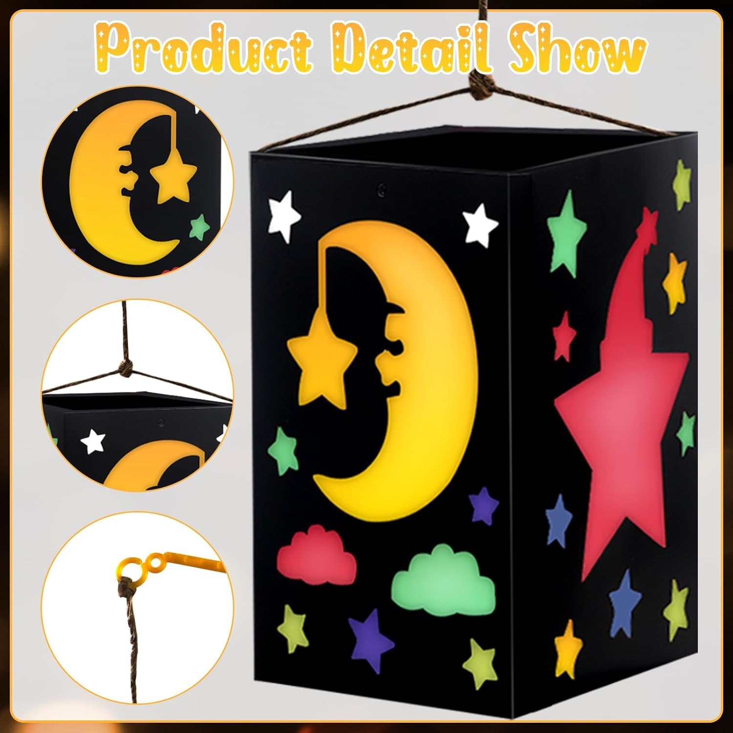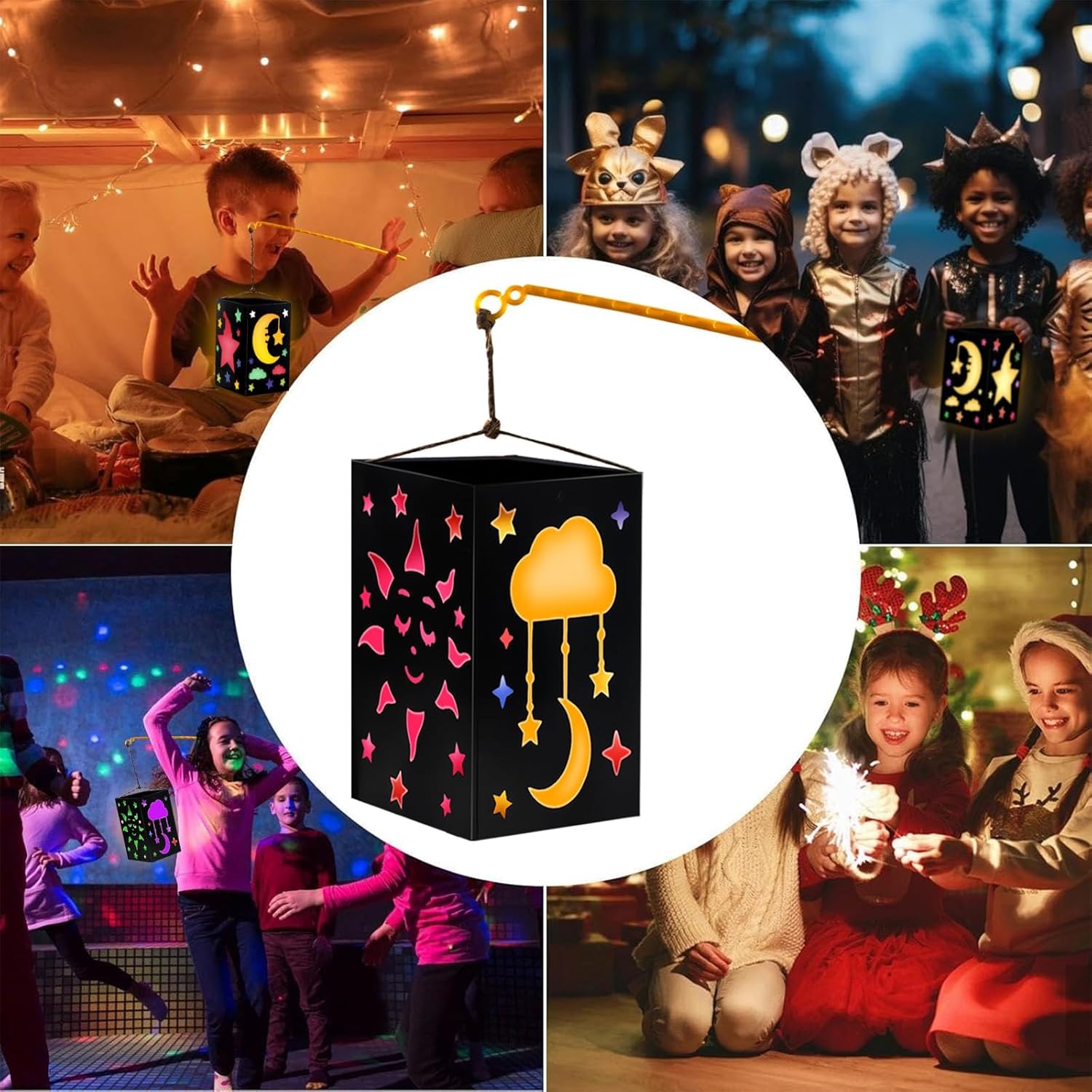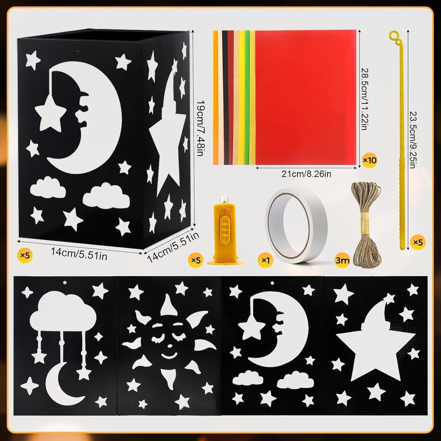 【San Martino Laterne Bastelset】:Sie erhalten 5 Stück Laternenrohlinge mit zwei Stilen zur Auswahl: Einhorn und Sonne, Mond und Stern, 10 Stück farbiges Papier, ein Bündel mit 3 Metern Seil, eine Rolle doppelseitiges Papier Klebeband, 5 Stück Laternenstangen, 5 kleine gelbe Lichter. Der Laternenrohling manca 19*14*14 cm. 【Materiale delle barre di arresto】:Hergestellt aus highwertigem Papier, robust and long, einfach zu lagern and wiederzuverwenden, ist es ein idealer Spielgefährte, der das Wachstum Ihres Kindes begleitet, und eine Highlight-Dekoration bei Feiertagsfeiern. 【Caldo e romantico】: Il piccolo gel può essere acceso direttamente nella Laterne installiert werden e lässt sich einfach mit einem Klick anzünden. Das warme Licht scheint durch das halftransparente Farbpapier und schafft eine warme und romanticische Atmosphäre, die Ihren Raum sofort mit festlicher Freude und Wärme erfüllt. 【Einfach zu installieren】: Es sind keine professionellen Werkzeuge erforderlich, es kann einfach mit Ihren Händen zusammengebaut werden. Laterne st martin è raffinato gestaltet e das color Papier lässt sich leicht einlegen. Das faltbare Design der Laterne erleichtert das Tragen und Aufbewahren, sodass die Kreativität jederzeit und überall entfalten kann, ohne Platz zu Beanpruchen, und für unbegrenzten Genuss. 【Fantasie anregen】: Kinder können ihrer Fantasie freien Lauf lassen, um Muster zu zeichnen oder Dekorationen auf die Laternen zu kleben, um einzigartige Werke zu schaffen. Trainieren Sie die praktischen Fähigkeiten and die Kreativität der Kinder, vertiefen Sie die emotione Verbindung zwischen Familienmitgliedern and verbringen Sie eine warme und schöne Zeit miteinander.