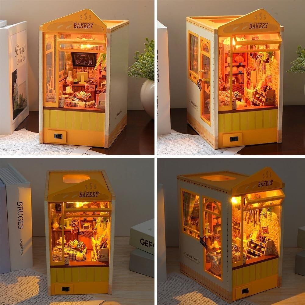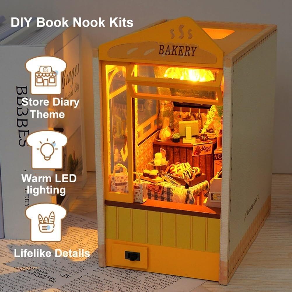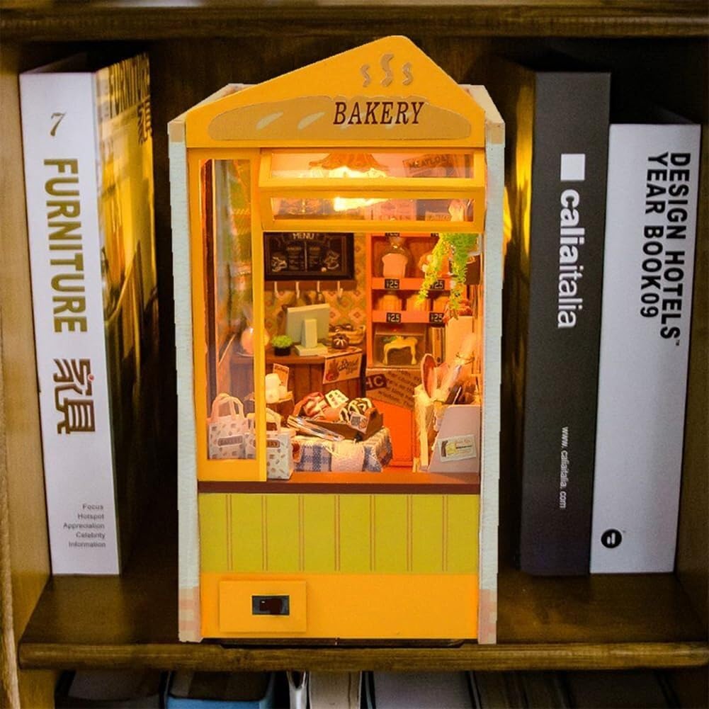 Divertimento fai da te immersivo: questo kit per angolo lettura ti permette di sperimentare il fascino della creazione artigianale. Include una squisita scena di panetteria in miniatura con una vetrina illuminata, scaffali e una varietà di accessori, che ti permettono di creare un mondo in miniatura unico con le tue mani. Esperienza di assemblaggio facile: goditi lintero processo di assemblaggio di un puzzle in legno 3D, inclusi i passaggi di pittura, cucito e decorazione. È facile da imparare e il prodotto finito è vivido e realistico, dandoti un pieno senso di realizzazione. Dimensioni compatte dellesposizione: il prodotto finito misura 3,54 * 6,88 * 5,5 pollici, il che è compatto e salvaspazio. Che si tratti di una libreria, una scrivania o una camera da letto, aggiungerà unatmosfera calda. Arredamento unico per la casa: il design realistico della panetteria con colori vivaci e texture squisite aggiungerà personalità e un tocco artistico al tuo ambiente domestico, rendendolo un pezzo da esposizione accattivante. Garanzia di qualità senza preoccupazioni: ogni set di materiali viene sottoposto a rigorosi controlli di qualità e tutti gli accessori sono completi. Il nostro team di assistenza clienti professionale è sempre disponibile per rispondere alle vostre domande sul montaggio e garantire un processo agevole e piacevole.