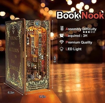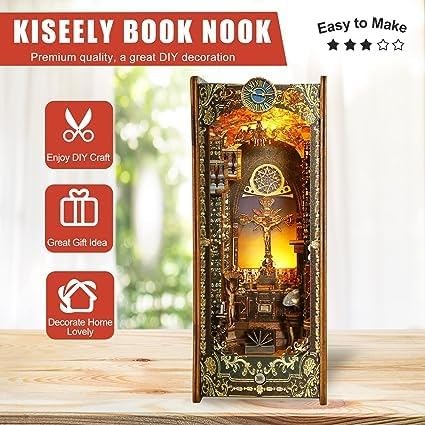Questo kit fai da te per creare un angolo dedicato ai libri richiede il montaggio da parte dellutente e il manuale a colori incluso vi guiderà passo dopo passo attraverso lintero processo. Una volta completato il montaggio, vi sentirete pienamente realizzati e anche i principianti potranno iniziare facilmente. Realizzato in legno di alta qualità, tutti i componenti sono tagliati con precisione e facilmente smontabili per il montaggio. Il materiale robusto e durevole rende il vostro angolo dedicato ai libri più realistico e vi trasporta nel fascino del mondo in miniatura. Offriamo tre diversi stili di angoli dedicati ai libri tra cui scegliere, ognuno con uno scenario e un livello di difficoltà unici. I principianti possono scegliere lo stile fantasy oceanico e godersi un piacevole momento di costruzione. Questo è un regalo creativo perfetto, che unisce squisita fattura e divertimento fai da te. Che venga regalato a familiari, amici o persone care, porterà sorprese e gioia. Abbiamo ispezionato attentamente ogni set di prodotti prima della spedizione per garantire che tutti gli accessori siano completi e senza omissioni. Potete acquistare e assemblare in tutta sicurezza.