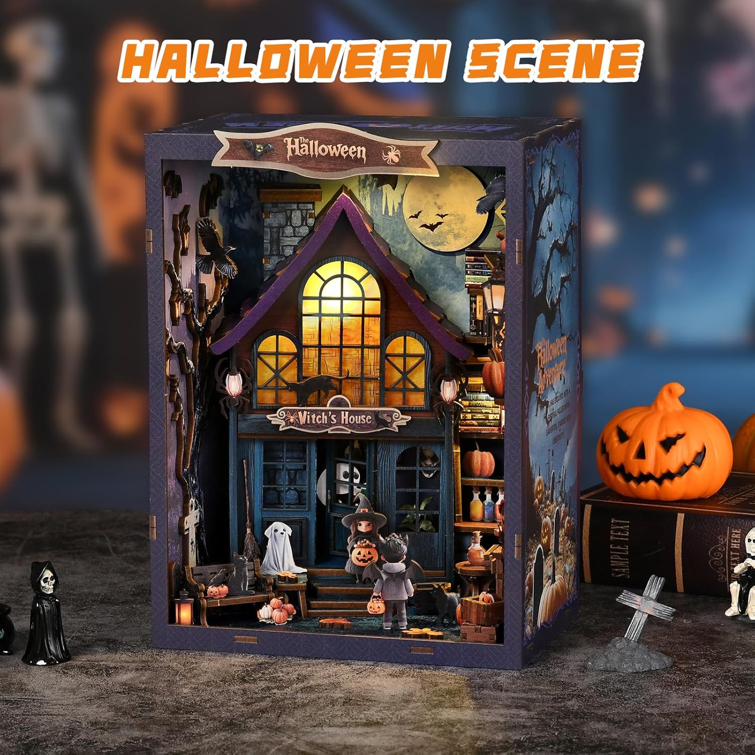 Kit per angolo libro di Halloween: immergiti nella creazione spettrale con il nostro kit "The Magical Night at the Castle" Book Nook - una miscela ammaliante di arte di Halloween e emozioni fai da te. Questo angolo libro puzzle 3D ti consente di costruire un piccolo mondo di castello gotico sul tuo scaffale. Metti insieme dettagli come le misteriose mura del castello gotico, quindi dai vita alla storia dell'enigmatica strega, pipistrelli e vampiro mentre finisci questo inquietante - cool kit di Halloween in miniatura fai da te. Perfetto per tutti i livelli di abilità, non è necessario alcun professionista di Halloween Costruzione premium con LED: realizzato in legno massello di qualità per una maggiore durata e una finitura incredibilmente naturale. Viene fornito con luci a LED per proiettare un bagliore ultraterreno sulla tua scena in miniatura, rendendo il castello gotico, strega, pipistrelli e vampiro davvero pop al buio. Questo non è solo un kit, è un kit premium per casa delle bambole a tema Halloween realizzato per adulti che desiderano una qualità duratura e formicolio della colonna vertebrale Decorazione unica di Halloween: aggiorna il tuo scaffale da ordinario a minacciosamente sorprendente! Il nostro Book Nook si trasforma in un diorama da libreria personalizzabile che ruba lo spettacolo di Halloween - immagina una piccola scena personalizzata del castello gotico dove la strega, i pipistrelli e i vampiri giocano la loro storia oscura, mescolandosi con i tuoi libri. Non è solo arredamento; è un pezzo spettrale che infonde profondità e un tocco di intrigo di Halloween a qualsiasi spazio, invitando chiunque a fermarsi e perdersi nella tua creazione unica Ottima scelta regalo di Halloween: alla ricerca di un regalo unico di Halloween? Il nostro kit "The Magical Night at the Castle" per adulti è ideale per i fanatici di Halloween e le famiglie. Regalalo, poi costruiscilo insieme - ridi (nervosamente), collabora e crea ricordi spettrali con questo kit di costruzione per adulti. Il pezzo finito? Una colonna vertebrale - ricordo agghiacciante del divertimento (e forse un po 'di paura) - tempo pieno trascorso insieme Suggerimenti caldi: si prega di notare: portare la propria colla e batterie! Aiutano a fissare i pezzi e alimentare i LED per una magia completa di Halloween
