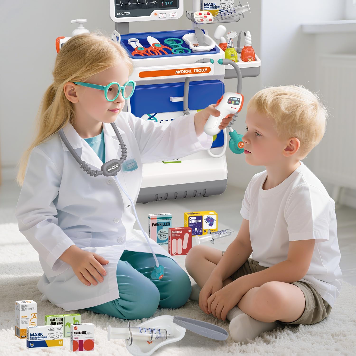 SET COMPLETO: Include stetoscopio, termometro, strumenti dentistici e altri accessori medici per un'esperienza di gioco realistica e coinvolgente EDUCATIVO: Aiuta i bambini a familiarizzare con gli strumenti medici e riduce la paura delle visite dal dottore attraverso il gioco di ruolo MATERIALI SICURI: Realizzato con materiali di alta qualità, adatti ai bambini, resistenti e durevoli per ore di divertimento GIOCO DI RUOLO: Perfetto per stimolare l'immaginazione e la creatività dei bambini mentre interpretano il ruolo di medico o dentista REGALO IDEALE: Ottimo regalo educativo per bambini e bambine, adatto per il gioco individuale o di gruppo