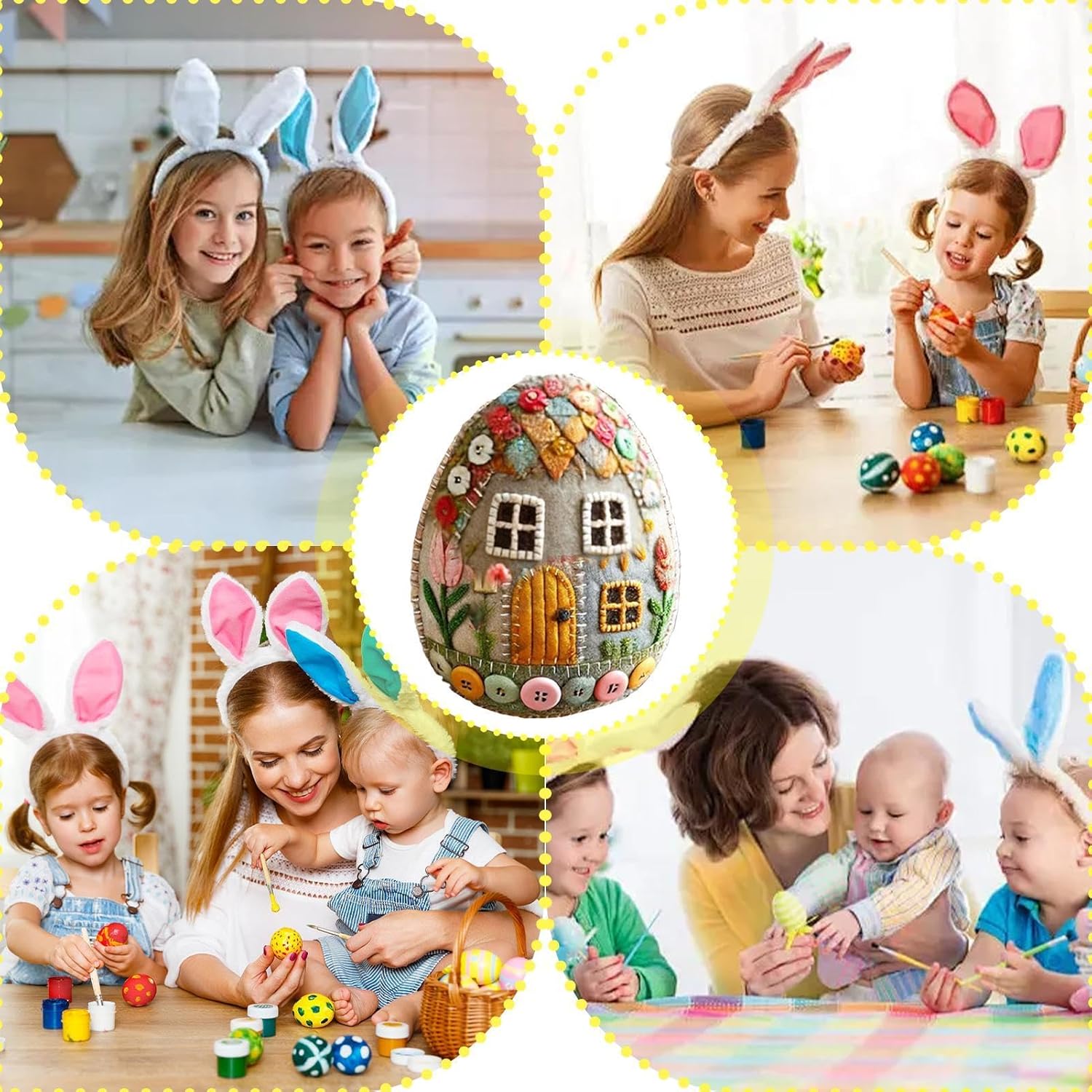 Rilascia il divertimento in famiglia: inizia gioia e creatività mentre raccogli amici e la famiglia per un processo di creazione memorabile, migliorando l'interazione e le relazioni Usi versatili: trasforma il feltro in adorabili personaggi per decorazioni pasquali o regali, promettendo un tocco fatto a mano per indimenticabili celebrazioni pasquali Adatto per regalare: realizzato su misura per regalare ad amici o parenti, il kit di uova in feltro offre un regalo memorabile, perfetto per accendere gioia tra appassionati di artigianato e principianti Design: aggiungi fascino in qualsiasi stanza con un delizioso design patchwork a forma di casetta per le uova, trasformando il tuo spazio domestico in un grazioso e vivace paradiso pasquale