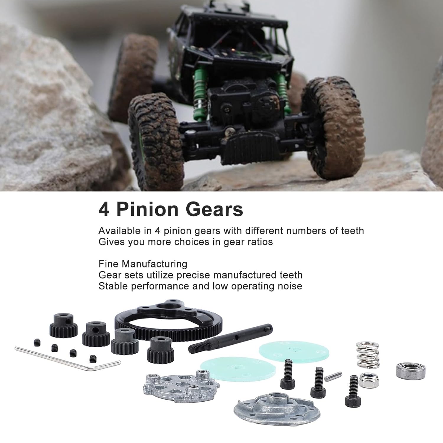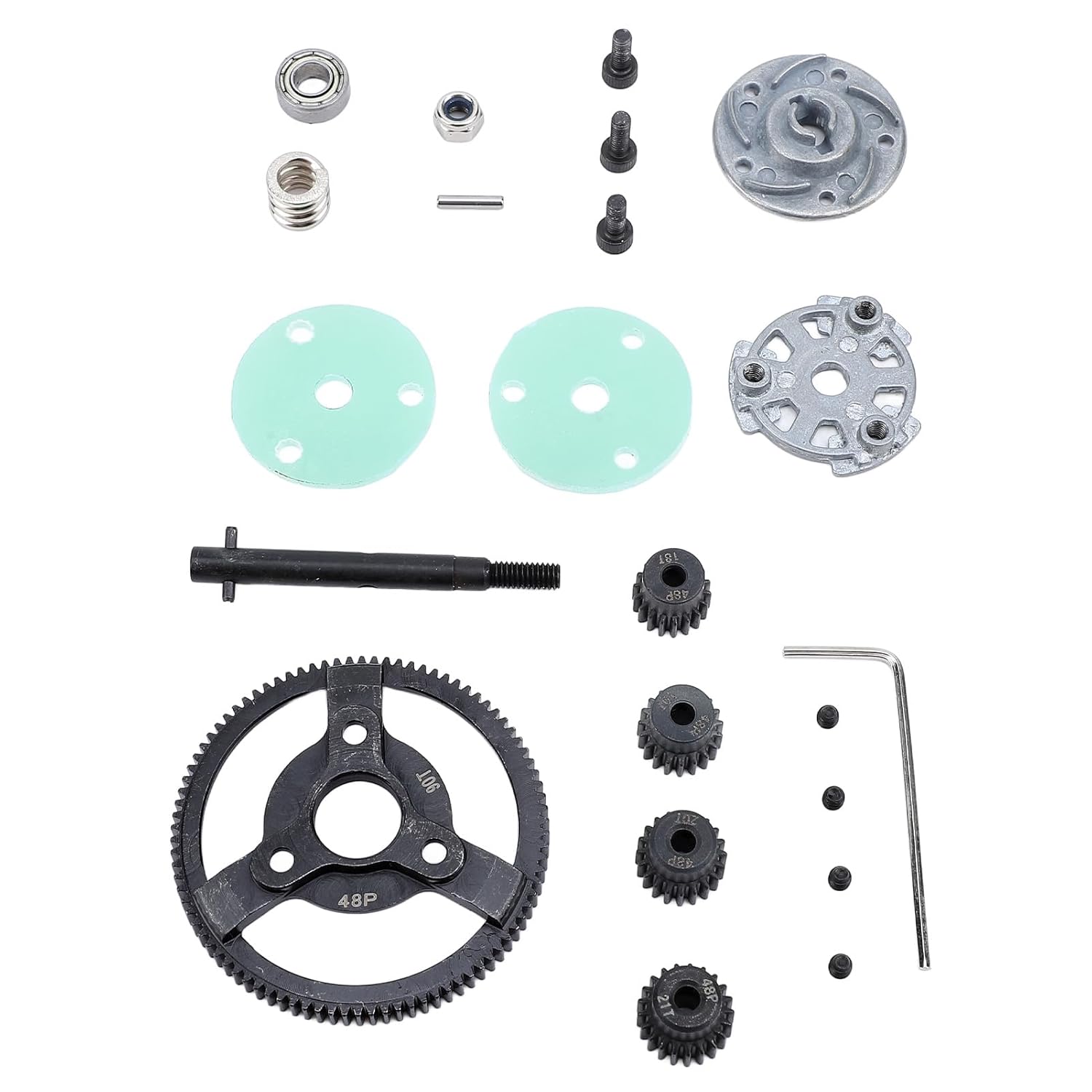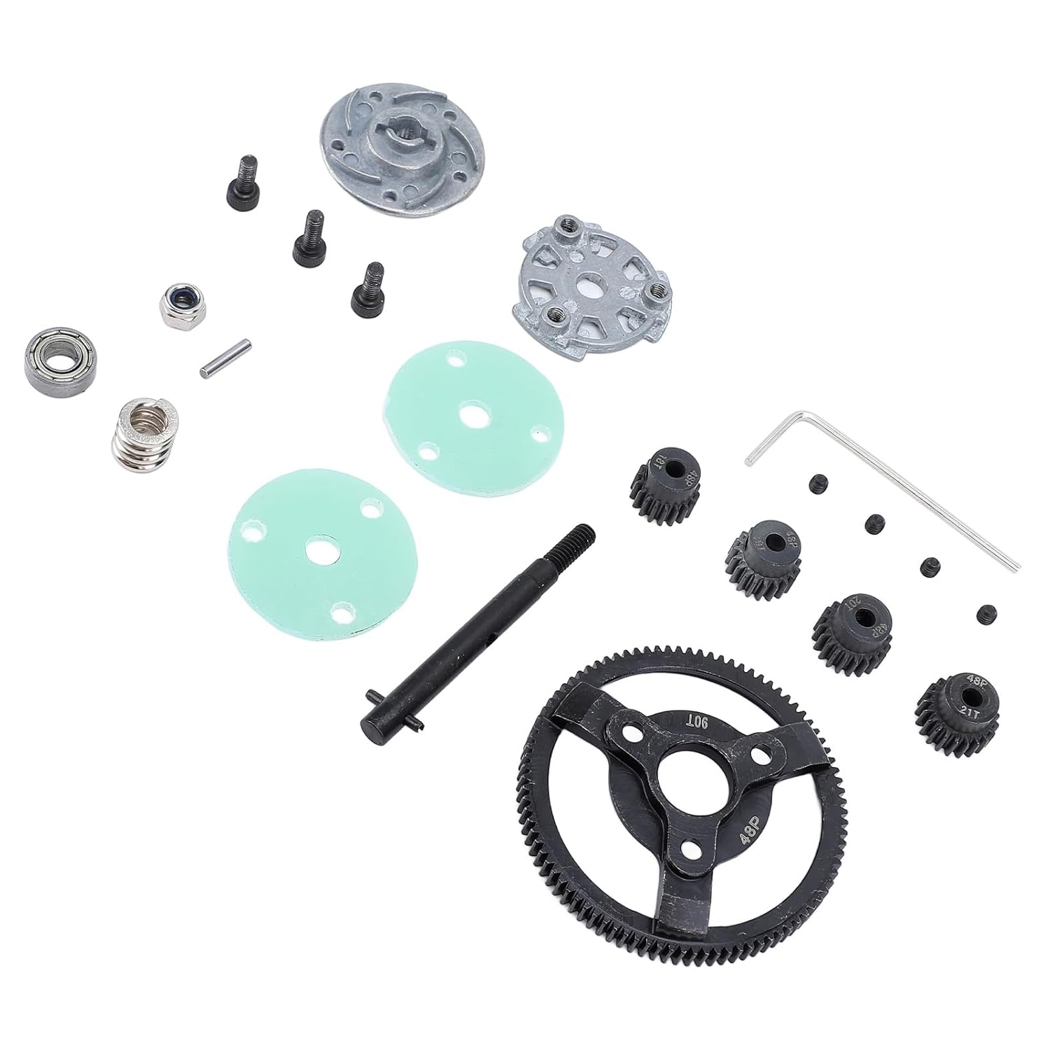 [Vestibilità perfetta per Traxxas Slash] Questo equipaggiamento per auto RC è progettato appositamente per le auto RC Slash 2WD VXL 1/10, fornendo una vestibilità perfetta con le parti di aggiornamento dell'ingranaggio cilindrico della frizione antisaltellamento in metallo. L'ingranaggio in acciaio al carbonio 48p include un grande ingranaggio 90T e 4 motori (18T 19T 20T 21T) per garantire compatibilità e prestazioni migliorate per il tuo veicolo RC. [Materiale Langable Premium] Realizzato in acciaio al carbonio di alta qualità, questo set di attrezzi da pista professionale offre una durata superiore e una lunga durata. Il materiale composito stampato duro garantisce che questi ingranaggi possano resistere a condizioni di gara intense mantenendo un funzionamento regolare e affidabile. [Opzioni di equipaggiamento versatili] con 4 diversi denti del pignone (18T 19T 20T 21T). Questo cambio per auto RC offre opzioni di rapporto versatili che ti consentono di personalizzare le prestazioni della tua auto RC. Che tu abbia bisogno di velocità o coppia, ti offre la flessibilità per ottenere l'esperienza di guida desiderata. [Funzionamento preciso e silenzioso] Il set di aggiornamento professionale degli ingranaggi cilindrici RC è dotato di denti degli ingranaggi realizzati con precisione per mantenere prestazioni costanti e un funzionamento silenzioso. Il processo di produzione avanzato garantisce un accoppiamento regolare e un'usura ridotta per una guida più silenziosa ed efficiente. [Kit di aggiornamento completo] Questo kit completo di aggiornamento degli ingranaggi cilindrici RC include tutto il necessario per l'installazione: 1 ingranaggio grande 4 ingranaggi del motore 1 chiave 4 viti di regolazione 3 viti 1 cuscinetto 1 perno e 7 parti di montaggio. L'intero set garantisce la disponibilità di tutti i componenti necessari per un processo di aggiornamento senza interruzioni.