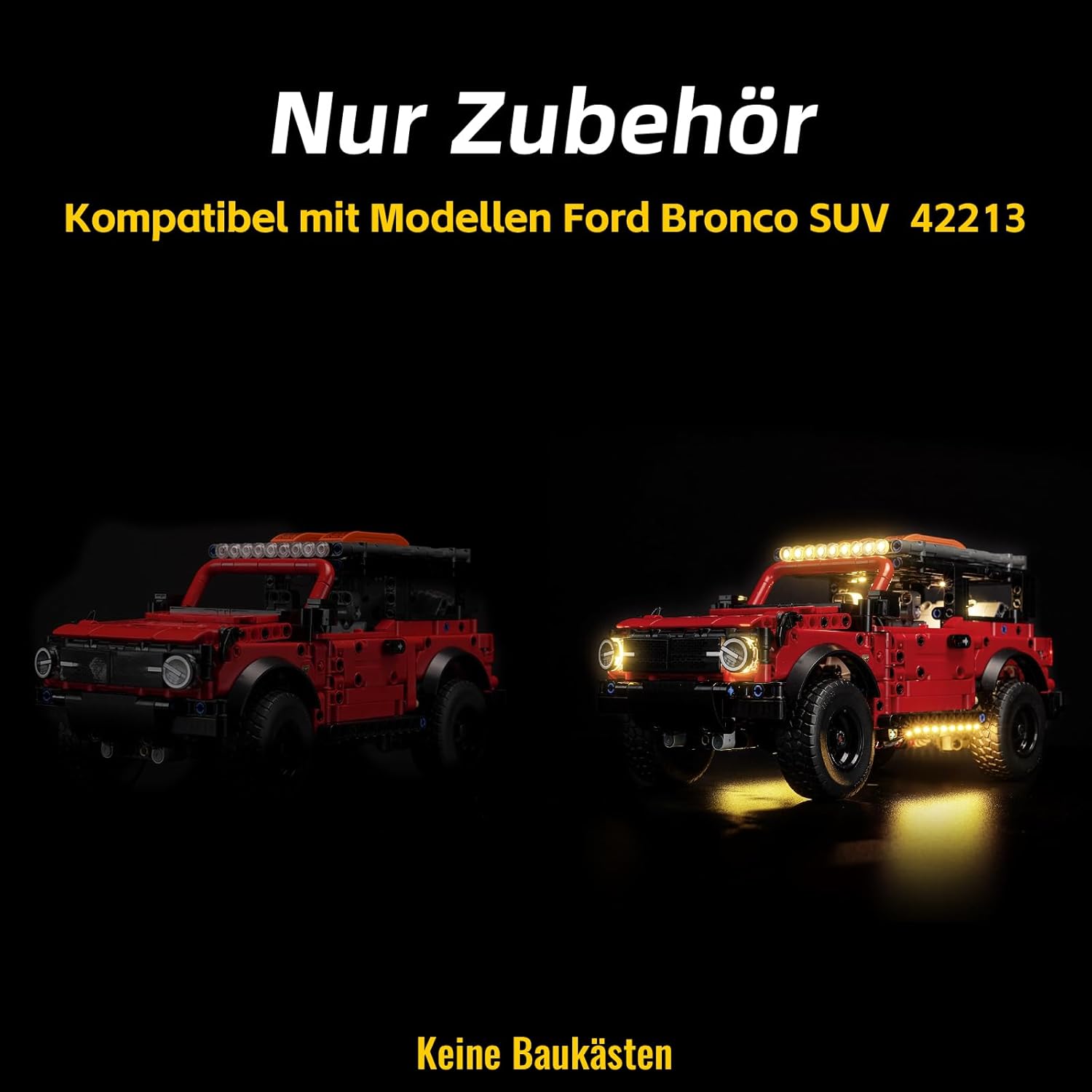 【Versione telecomando】 Design con modulo telecomando e telecomando. È possibile scegliere tramite telecomando quale luce parziale deve essere aperta. Porta il tuo ford bronco suv 42213 alla luce e portalo in vita (solo set di luci, mattoncini non inclusi). Facile installazione: tutti i LED per 42213 ford bronco suv hanno un modello di luce uniforme e i connettori dei cavi si adattano perfettamente. Il nostro team di illuminazione professionale vi fornirà istruzioni di installazione passo-passo tramite video o PDF per facilitare l'installazione. Esperienza di utilizzo sicura: il nostro set di luci decorative compatibili con LEGO 42213 è realizzato con cavi in rame di alta qualità. Grazie alla loro resistenza al calore e alla combustione, possono prolungare la loro durata e offrirti un'esperienza più sicura. Molteplici opzioni di alimentazione: la confezione viene fornita con cavo USB. Le luci a LED possono essere alimentate da una power bank/caricatore da parete/presa USB/laptop/altro dispositivo con porta USB. Goditi il divertimento creativo fai da te: il nostro set di luci offre un'illuminazione brillante che ti aiuta a disattivare la tua vita frenetica e recuperare la tua bella notte.