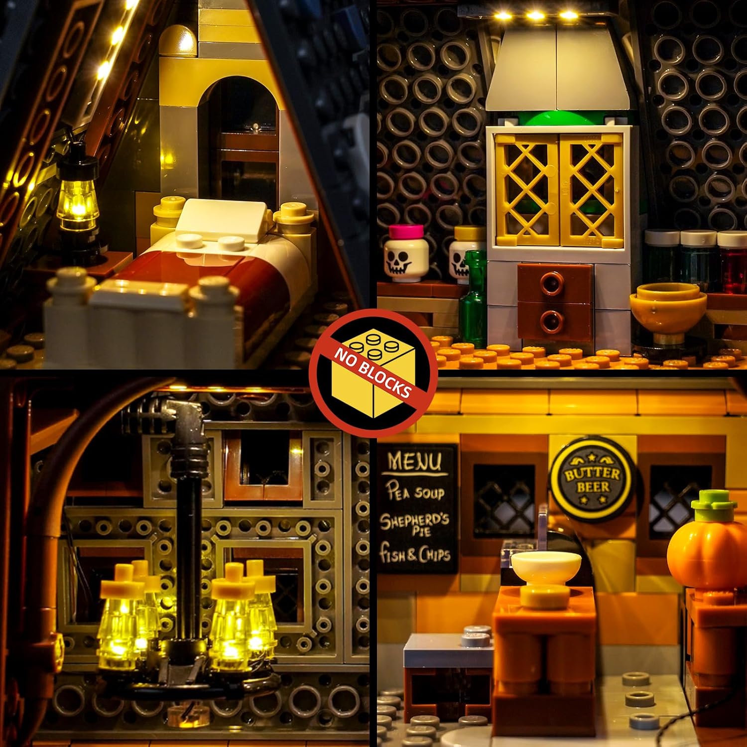 【Versione telecomando】 Design con modulo telecomando e telecomando. È possibile scegliere tramite telecomando quale luce parziale deve essere aperta. Porta il tuo hogsmeade village collectors' edition 76457 dalla luce e prendilo in vita (solo set di luci, mattoncini non inclusi). 【Facile installazione】 Tutti i LED per 76457 hanno un modello di luce uniforme e i connettori dei cavi si adattano perfettamente. Il nostro team di illuminazione professionale vi fornirà istruzioni di installazione passo-passo tramite video o PDF per facilitare l'installazione. Esperienza di utilizzo sicura: il nostro set di luci decorative compatibile con Lego hogsmeade village collectors' Edition è composto da cavi di rame di alta qualità. Grazie alla loro resistenza al calore e alla combustione, possono prolungare la loro durata e offrirti un'esperienza più sicura. Molteplici opzioni di alimentazione: la confezione viene fornita con cavo USB. Le luci a LED possono essere alimentate da una power bank/caricatore da parete/presa USB/laptop/altro dispositivo con porta USB. Goditi il divertimento creativo fai da te: il nostro set di luci offre un'illuminazione brillante che ti aiuta a disattivare la tua vita frenetica e recuperare la tua bella notte.