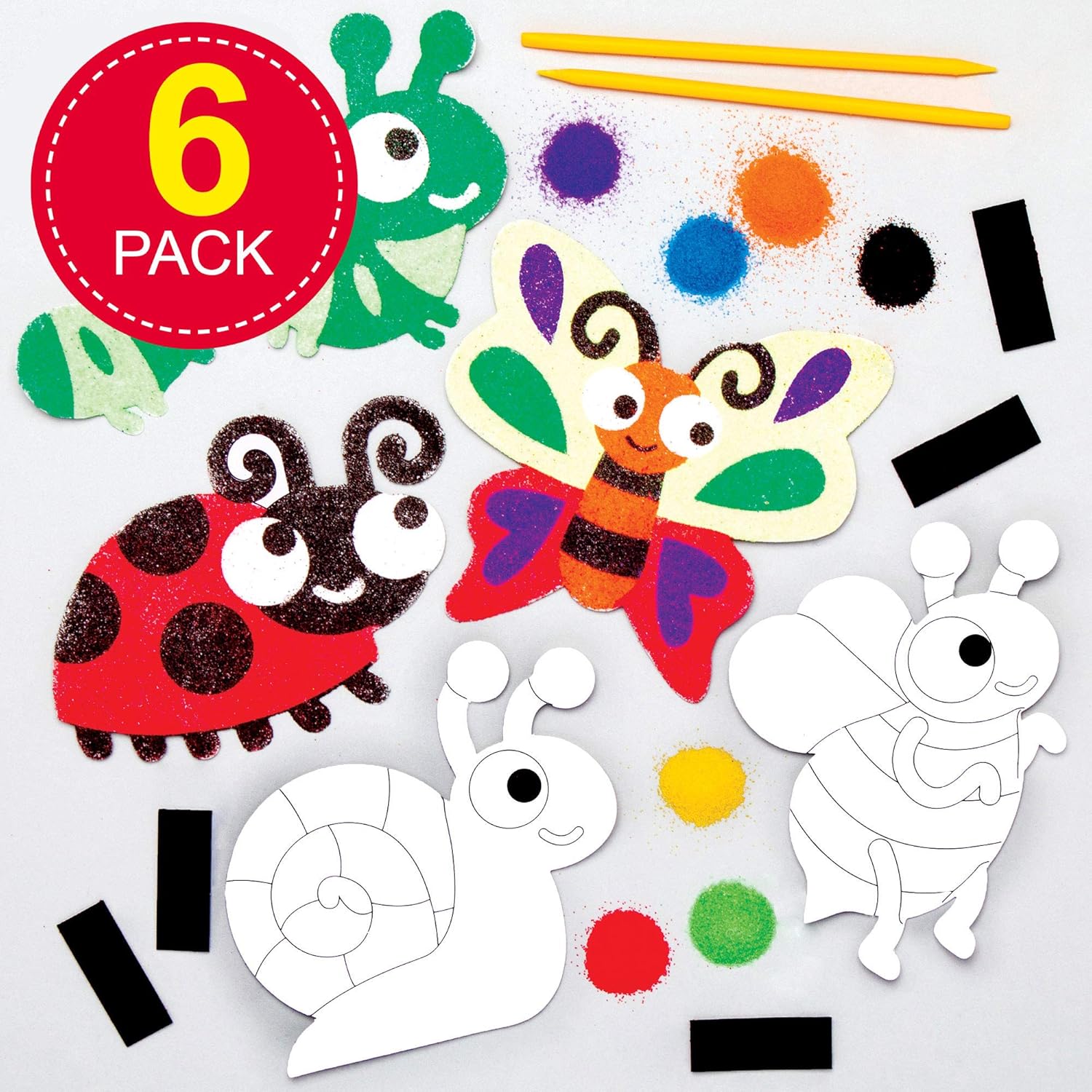 Divertimento magnetico: Grandi premi, regali e ricordi che sono facili da fare. Stacca la sezione pre-tagliata per scoprire la superficie adesiva da cospargere di sabbia. Facile da fare: Ogni kit contiene sagome in cartoncino autoadesive, sabbia colorata e calamite autoadesive. Dimensione del progetto: Dimensione dell'insetto 9,5 cm-12 cm. Include 6 design come farfalla, ape, lumaca, bruco, libellula e coccinella. Sabbia in 7 colori assortiti: rosso, blu, giallo, arancione, verde, viola e nero. Idee creative: Questi progetti creativi sono perfetti per ragazze e ragazzi. Utilizzare per artigianato per feste di compleanno, bigliettini d'auguri arte 3D, premi, giochi di estrazione pignata, decorazioni e altro ancora. Realizzato da esperti: Baker Ross progetta e fornisce le migliori forniture artistiche e artigianali e giocattoli a scuole, gruppi e genitori da oltre 40 anni. Tutti i prodotti sono conformi alle norme generali sulla sicurezza dei prodotti e alle raccomandazioni sull'età, dove applicabili.