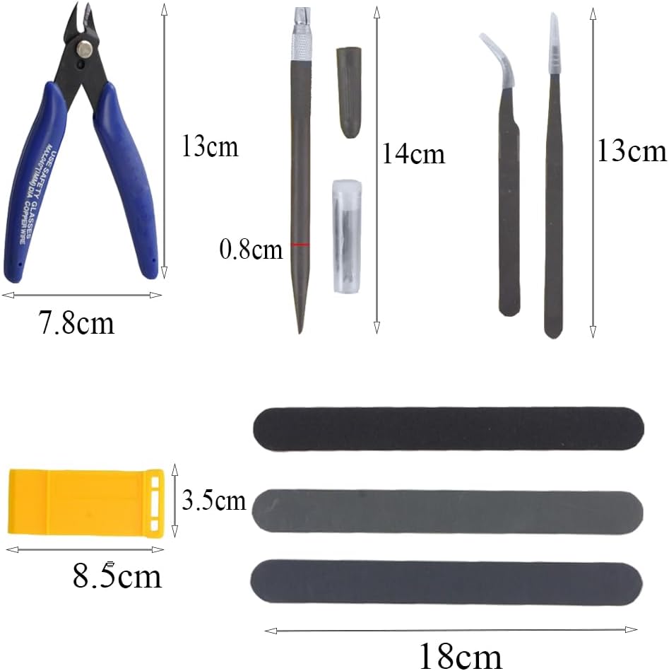 Include strumenti di base: il set di strumenti di modellazione di base include strumenti da 6 pezzi: pinza laterale da 1 pezzo, pinzetta da 2 pezzi, blocco per lucidatura 1 set, coltello da penna da 1 pezzo, separatore di modello da 1 pezzo. Dimensioni del set di strumenti di modellazione di base: la dimensione della pinza laterale è 13,5 * 5,5 cm. Le dimensioni delle pinzette sono 13 cm. Le dimensioni dei blocchi di lucidatura sono 18 cm. La dimensione del coltello a penna è di 14 cm. La dimensione del separatore del modello è 8,5 * 3,5 cm. Leggero e portatile: il kit di attrezzi è leggero. È comodo da trasportare e utilizzare. Metallo e materiale plastico: il set di strumenti di modellazione di base è realizzato in metallo e plastica. La pinza laterale è realizzata in acciaio al carbonio. La pinzetta è realizzata in acciaio inossidabile. E il separatore del modello è realizzato in plastica. E il set di blocchi di lucidatura è fatto di legno e carta vetrata. Il coltellino è realizzato in acciaio al carbonio e plastica. Ampie applicazioni: il set di strumenti di modellazione di base è adatto sia ai principianti che ai modellisti avanzati. Puoi usarlo per creare molti modelli.