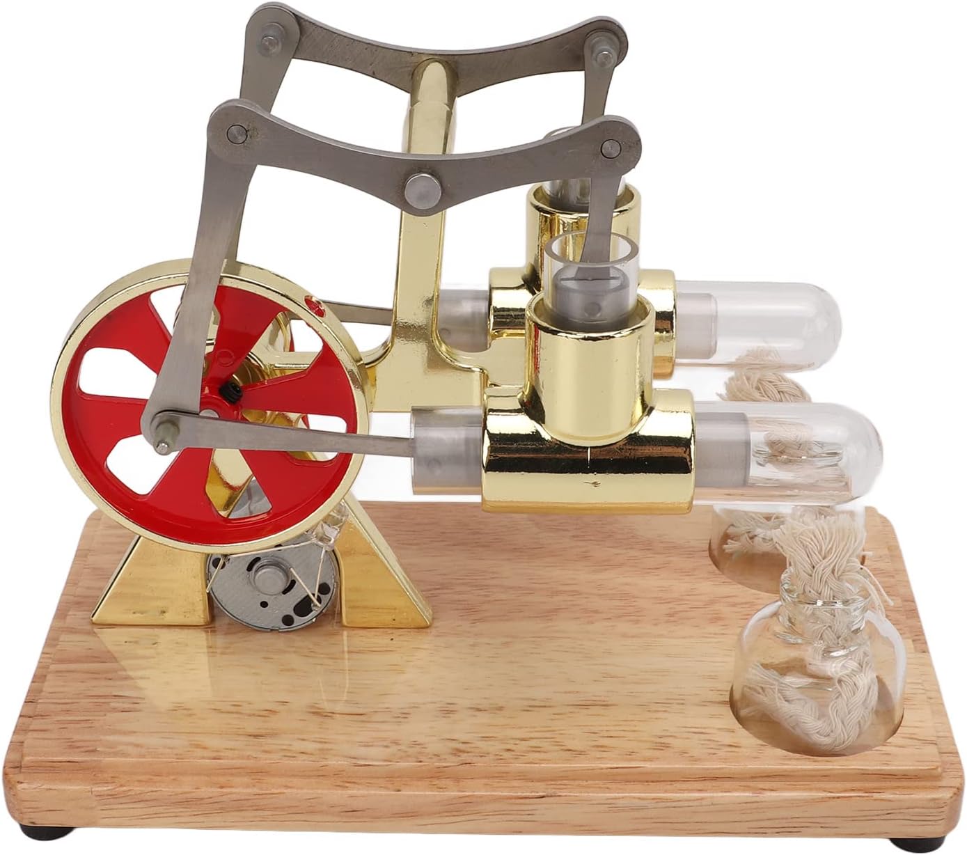 Funzionamento semplice: facile da usare, aggiungi il 95% di alcol al combustore di alcol e accendi. Lascia che la lampada bruci su un cilindro a un'estremità del cerchio per circa 60-120 secondi, quindi spingi delicatamente la ruota per farla funzionare. Modello del motore del motore Stirling: modello sperimentale fisico, tubo di vetro e lampada ad alcool di vetro facilitano l'osservazione diretta del movimento del pistone. Ampie applicazioni: ampia gamma di applicazioni, possono essere utilizzate come regali per progetti scientifici per bambini, apprendimento automatico fisico, oggetti di scena dimostrativi per insegnanti, ecc. Antiscivolo: ci sono 4 cuscinetti antiscivolo nella parte inferiore del modello per garantire un funzionamento uniforme. Prestazioni eccellenti: il modello del motore del motore Stirling ha un aspetto bello ed elegante, basso rumore e basso inquinamento.
