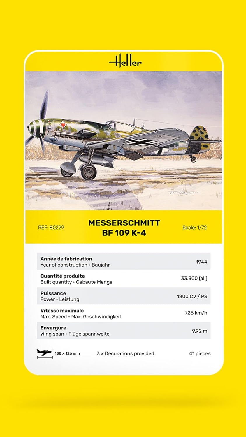 schönes modell von heller, gut verarbeitet und ausreichend detailliert, alles passte, kein verzug o.ä., schöne decals (aber fast zu viele), pilot leider keiner dabei, sieht fertig sehr gut aus.