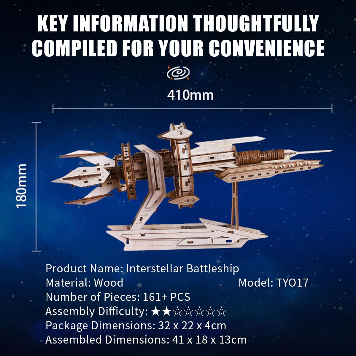 🚀【Divertimento fai-da-te】Assemblaggio in legno di precisione da 161 pezzi. Le parti ad alta precisione tagliate al laser garantiscono un processo di assemblaggio regolare senza lesioni, permettendoti di goderti un divertimento pratico e coinvolgente. Adatto a giovani dai 14 anni in su e ad adulti in cerca di una sfida. DECORAZIONE UNICA: design della nave da guerra ispirato alla fantascienza. Il modello finito misura 41 cm di lunghezza ed emana un'atmosfera futuristica. Si abbina perfettamente a studi, uffici o sale giochi e attira l'attenzione. REGALO PERFETTO: un oggetto da collezione indispensabile per gli appassionati di tecnologia. Elegantemente confezionato in una confezione regalo, questo è un regalo creativo di compleanno o di Natale per amici, padri o appassionati di fantascienza. Include strumenti di montaggio e istruzioni per un divertimento immediato all'apertura. Taglio preciso: facile da montare, non ti farà male alle mani. Utilizzando una meticolosa tecnologia di incisione, ogni prodotto ha una superficie liscia, facile da montare, ecologico, inodore e ha una struttura stabile e stabile dopo l'assemblaggio. 🌟 【Promuovi un senso di realizzazione】 Combina sfida e abilità artistica 4-6 ore di esperienza di assemblaggio, seguita dalla libertà di dipingere e personalizzare la tua opera d'arte unica sulla corazzata spaziale