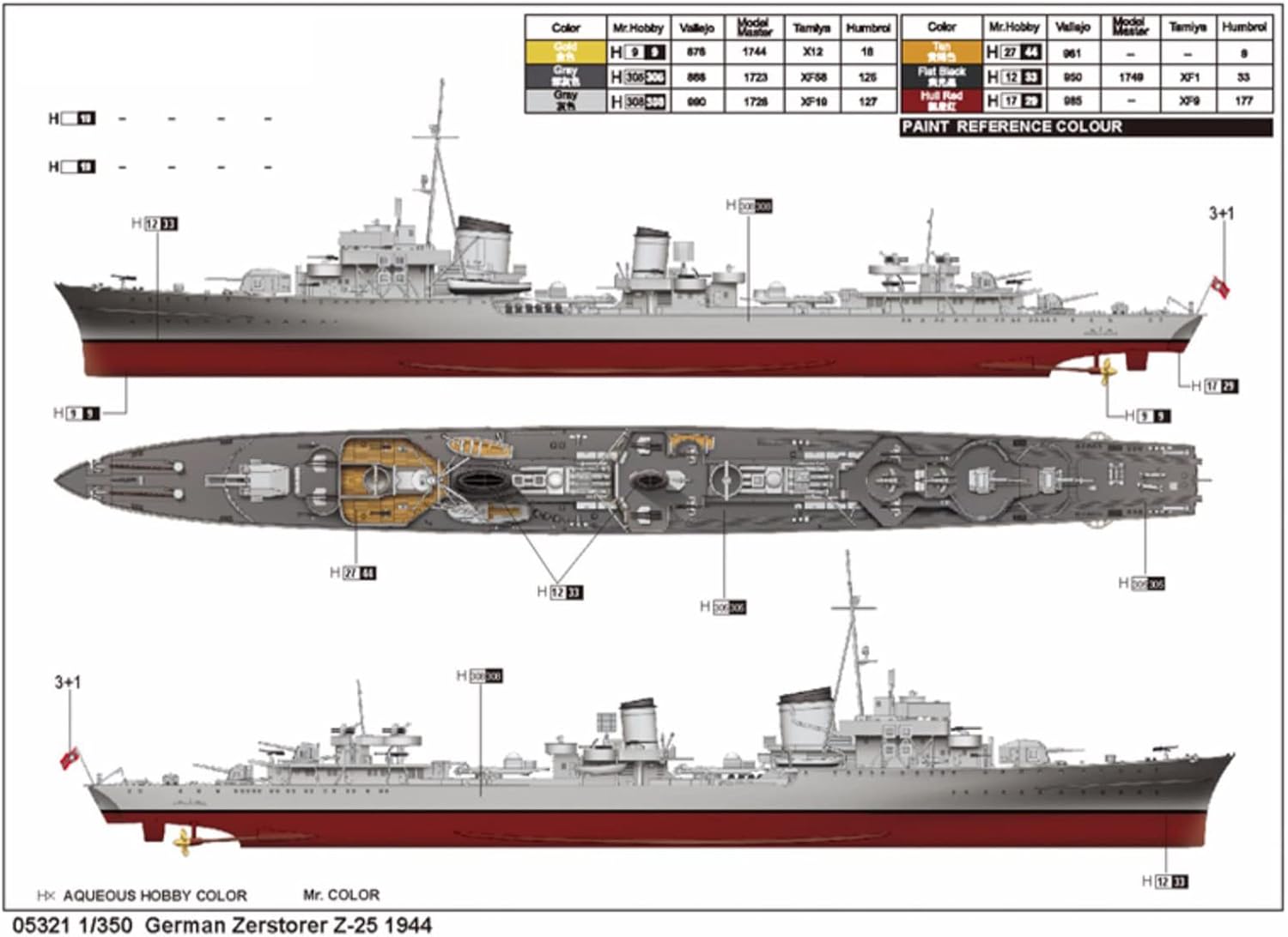 RESTORE Portaerei militare: 1/350 Manuale Manuale Fai da te Recupero Tedesco Zertorer Z-25 Destroyer Modello 1944; Questa confezione contiene modelli, strumenti di assemblaggio, pennarelli, rivestimenti, ecc. Una volta completato il modello, la dimensione è di circa 14,4" x 1,4" x 1,4" x 1,4" (3,5 cm); un buon modo per intrattenersi nel tempo libero. Conoscenza militare: il cacciatorpediniere Z-25 è il cacciatorpediniere della Marina tedesca durante la seconda guerra mondiale. Modello puzzle: il modello della portaerei deve essere assemblato fai-da-te per disegnare manualmente l'effetto pittorico desiderato. Questo non è un prodotto finito. L'effetto del prodotto finito è determinato dall'abilità fai-da-te di ognuno, che mette alla prova la tua abilità manuale e la capacità di pensiero manuale. Materiale di alta qualità: il materiale principale del modello assemblato della portaerei è plastica ecologica (non adatta ai bambini), atossica e insapore, sicura al 100%, ecologica e sana, senza sbavature, lavorazione di alta qualità, disegni accurati e dettagli accurati del modello, puoi goderti uno squisito modello di portaerei. Miglior regalo: puoi provare il divertimento di assemblare portaerei. Anche questo è un modello di corazzata unico, un fantastico regalo per adulti o bambini! Il design unico soddisfa le esigenze degli innamorati! Farà invidiare gli amici a vicenda.