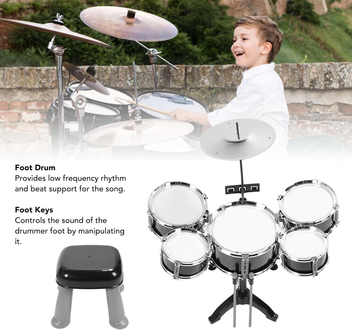 [ESPERIENZA] Lascia che tuo figlio acquisisca familiarità con la musica attraverso questo kit per bambini, che fornisce un modo tattile e interattivo per esplorare il ritmo e. [GIOCO IMMAGINATIVO] Incoraggia il gioco fantasioso con questo set jazz giocattolo per bambini, consentendo loro di creare le proprie esibizioni musicali ed esprimersi attraverso la musica. [GRANDE IDEA] Sorprendi un giovane musicista con questo set jazz per bambini, che unisce valore educativo con intrattenimento e creatività. [APPRENDIMENTO DINAMICO] Il supporto regolabile offre opportunità di apprendimento dinamico, adattandosi alla crescita e allo sviluppo musicale del tuo bambino per un'esperienza di gioco personalizzata. [CREATIVITÀ COLORATA] Il vivace set di giocattoli risveglia la creatività nei bambini, ispirandoli a esplorare il mondo della musica e del ritmo in modo colorato e coinvolgente.