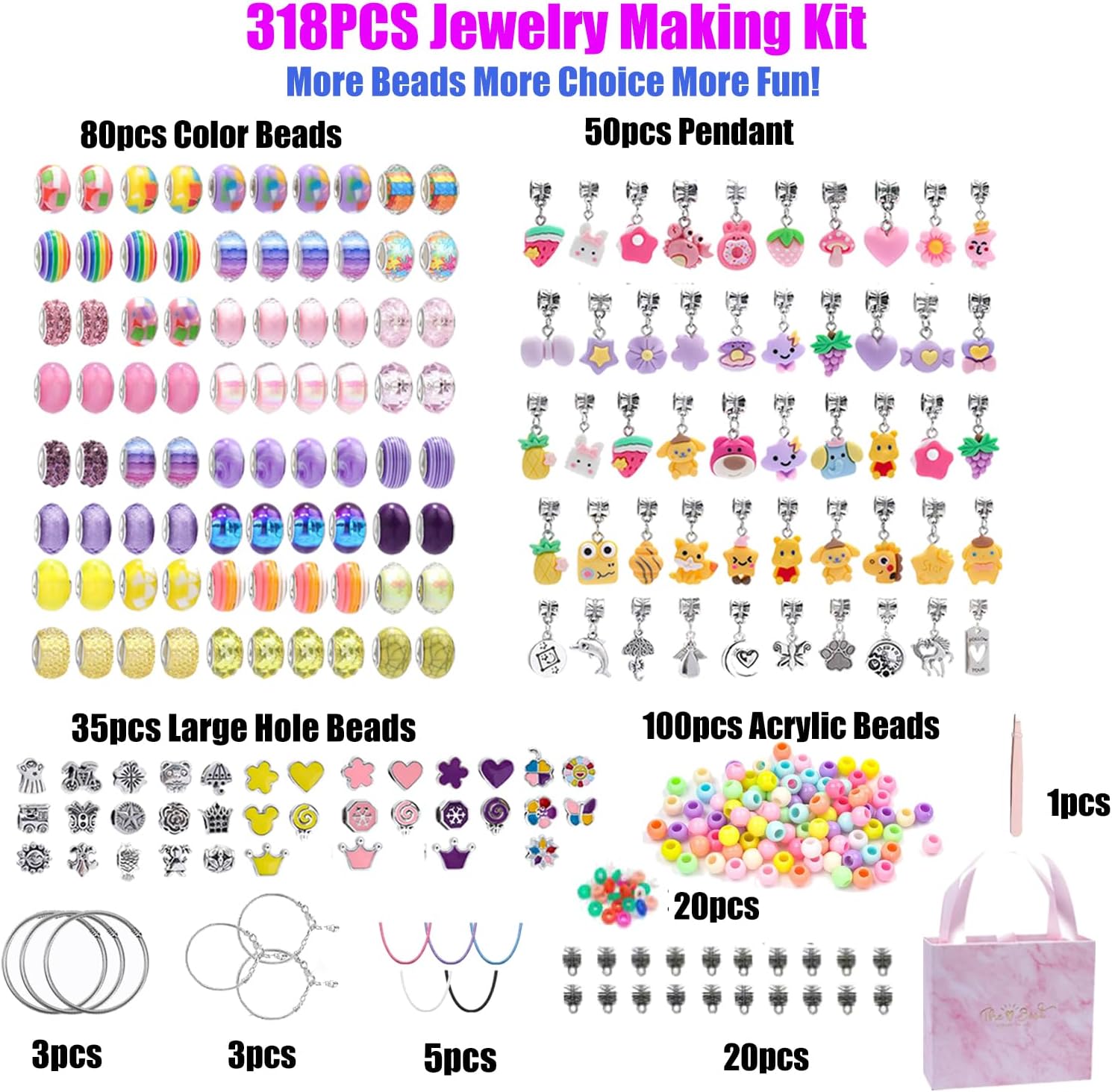 🎁 🎁 🎁 Set di braccialetti portafortuna fai-da-te da 318 pezzi: 80 perline colorate, 100 perline acriliche, 50 charms, 35 perline metalliche, 20 teste penzolanti, 20 anelli di gomma di fissaggio, 5 catene di corda, 3 braccialetti a catena a serpente regolabili, 3 catene a moschettone, 1 paio di pinzette, 1 confezione regalo, per un totale di 318 pezzi, tutti confezionati nella scatola regalo. È possibile soddisfare un gran numero di esigenze creative. È possibile creare braccialetti in diversi giorni della settimana, abbinandoli all'umore del giorno in base al nostro stato d'animo. 🎁 🎁 🎁 Kit per la creazione di gioielli facili per bambini:Basta rimuovere la vite alla fine della fibbia, scegliere le perline o i ciondoli che si desidera nella catena, quindi stringere la vite, si può facilmente togliere i ciondoli e riorganizzare o cambiare per fare braccialetti diver 🎁 🎁 🎁 Divertitevi con un'attività artigianale: può essere una divertente festa fai-da-te per le ragazze. Combinate perline e ciondoli per personalizzare e creare un braccialetto alla moda per ogni occasione e umore. Genitori e figli possono anche partecipare alla produzione insieme, favorendo la comunicazione emotiva tra genitori e figli e creando bei ricordi insieme. 🎁 🎁 🎁Confezione regalo: le varie perline del braccialetto sono confezionate in una bella scatola di cartone rosa, che lo rende un ottimo articolo da regalo per le ragazze che amano gli accessori fai-da-te. Può essere utilizzata anche come cassetto portaoggetti e come simpatico oggetto da festa per le bambine.Ottimo regalo per le bambine di 5 6 7 8 9 10 11 12 anni. 🎁 🎁 🎁 Regalo perfetto: combinare le perline per personalizzare e creare un braccialetto alla moda per ogni occasione e umore. Un ottimo regalo per le bambine per compleanni, giornate scolastiche, Natale, San Valentino, Festa della Mamma, anniversari o altre occasioni speciali. Potete anche creare gioielli unici e regalarli al vostro amante, ai vostri amici o alla vostra famiglia. Perfetti per le calze di Natale, i sacchetti regalo, il ripieno, il riempimento del cestino di Pasqua.