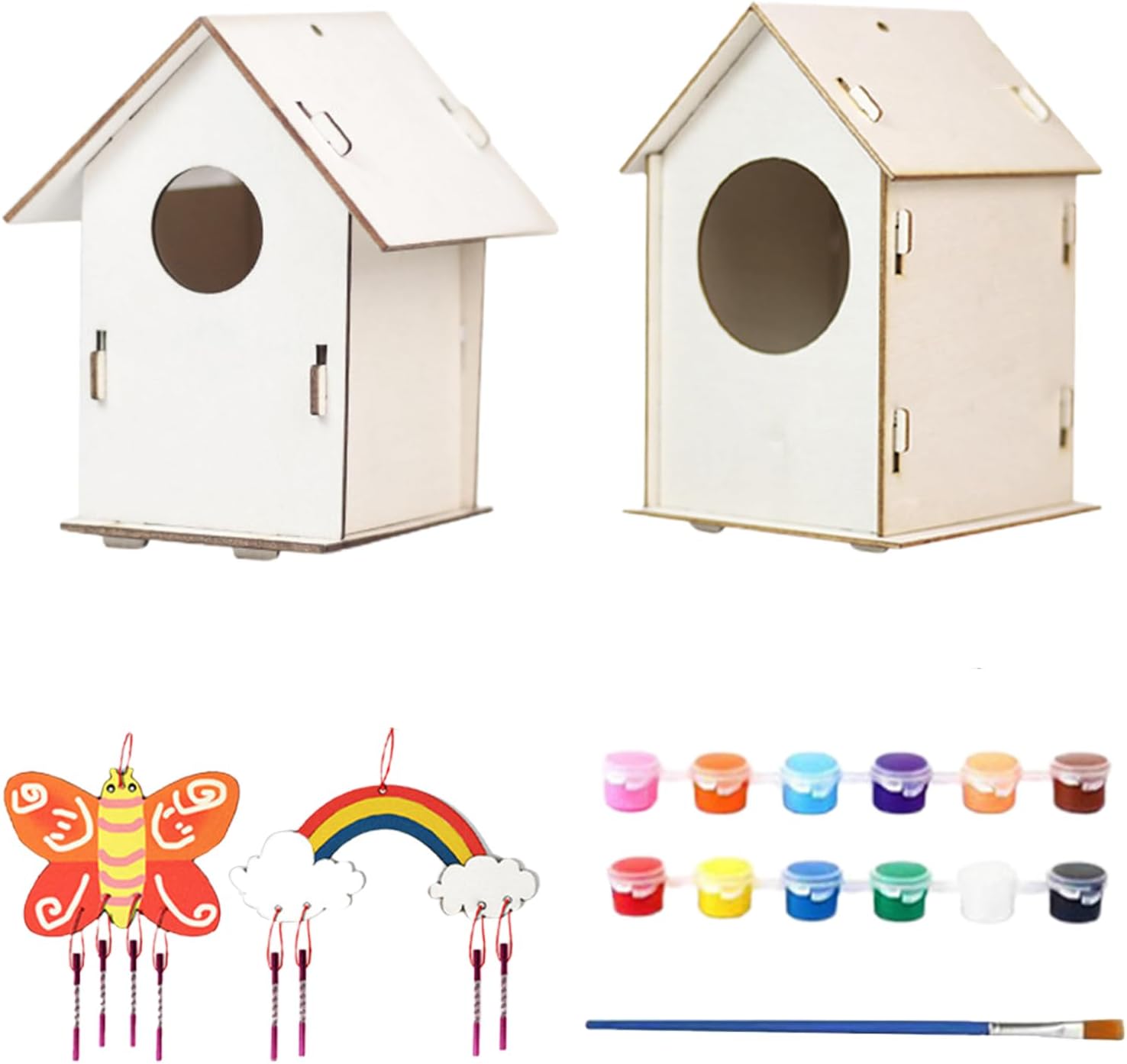 Legame creativo per famiglie: impegnati in una divertente attività artigianale con 2 casette per uccelli in legno, 12 colori vivaci di vernice e 1 pennello per divertimento che scatena gioia e creatività. Montaggio senza sforzo: imposta questa robusta casetta per uccelli in legno in pochissimo tempo. I tuoi amici piumati si troveranno nel loro santuario sicuro e resistente alle intemperie grazie alla sua robustezza e facilità di installazione. Apprendimento creativo: impegnarsi con la natura e promuovere la creatività, la pazienza e un legame con l'ambiente attraverso l'intrattenimento educativo che migliora le capacità pratiche. Alloggio per tutti gli uccelli: con un habitat accogliente e confortevole progettato per uccelli di tutte le dimensioni, questa casetta per uccelli è perfetta per progetti artistici e artigianali fantasiosi. Scelta ideale: impegnarsi con la natura attraverso questa affascinante casetta per uccelli, perfetta per gli amanti degli uccelli, ideale per bambini e adulti per festeggiare compleanni, migliorare l'istruzione domestica e ravvivare gli spazi interni ed esterni.