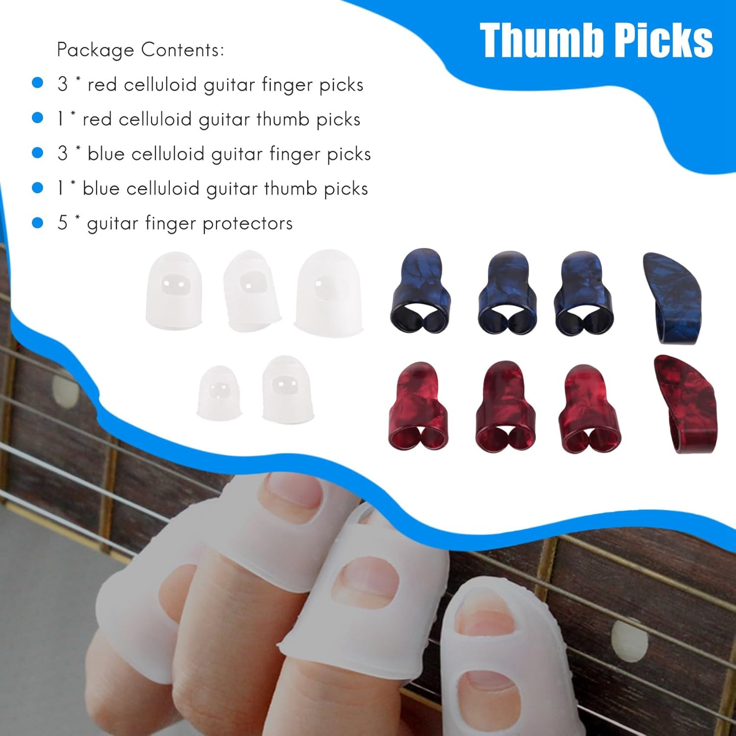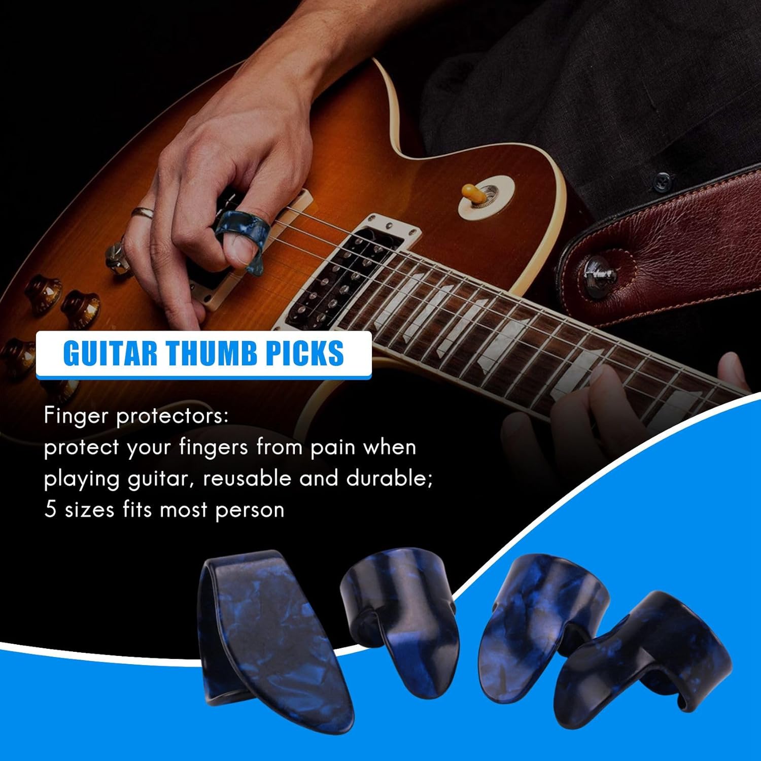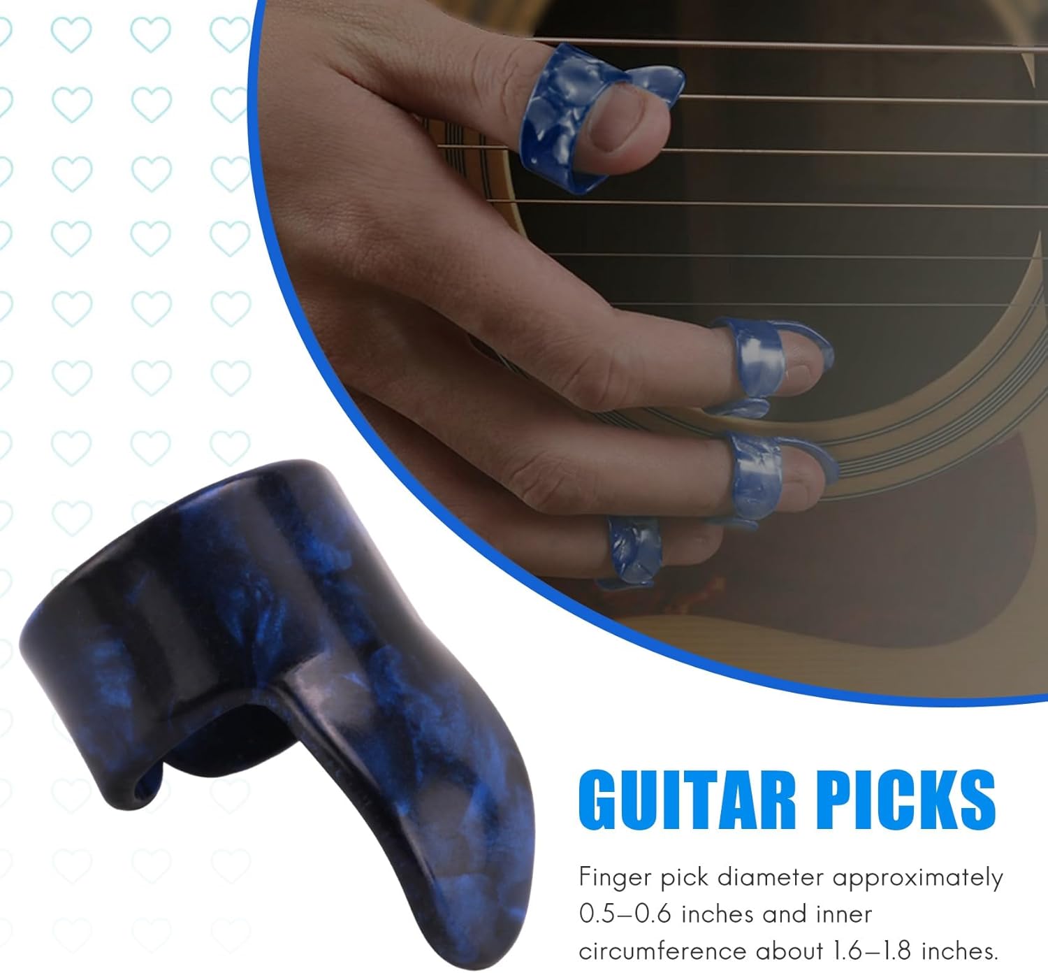 Diametro del pick dito circa 0,5-0,6 pollici e circonferenza interna circa 1,6-1,8 pollici. Controlla le dimensioni e la forma descrizione del prodotto in basso. Proteggi : proteggi le dal dolore suoni la chitarra, riutilizzabile e resistente; 5 taglie adatte alla maggior parte delle persone Plettri per pollice e dito: comodi, facili da usare, non ti sfregano il dito I plettri in celluloide sono lucidi e confortevoli;