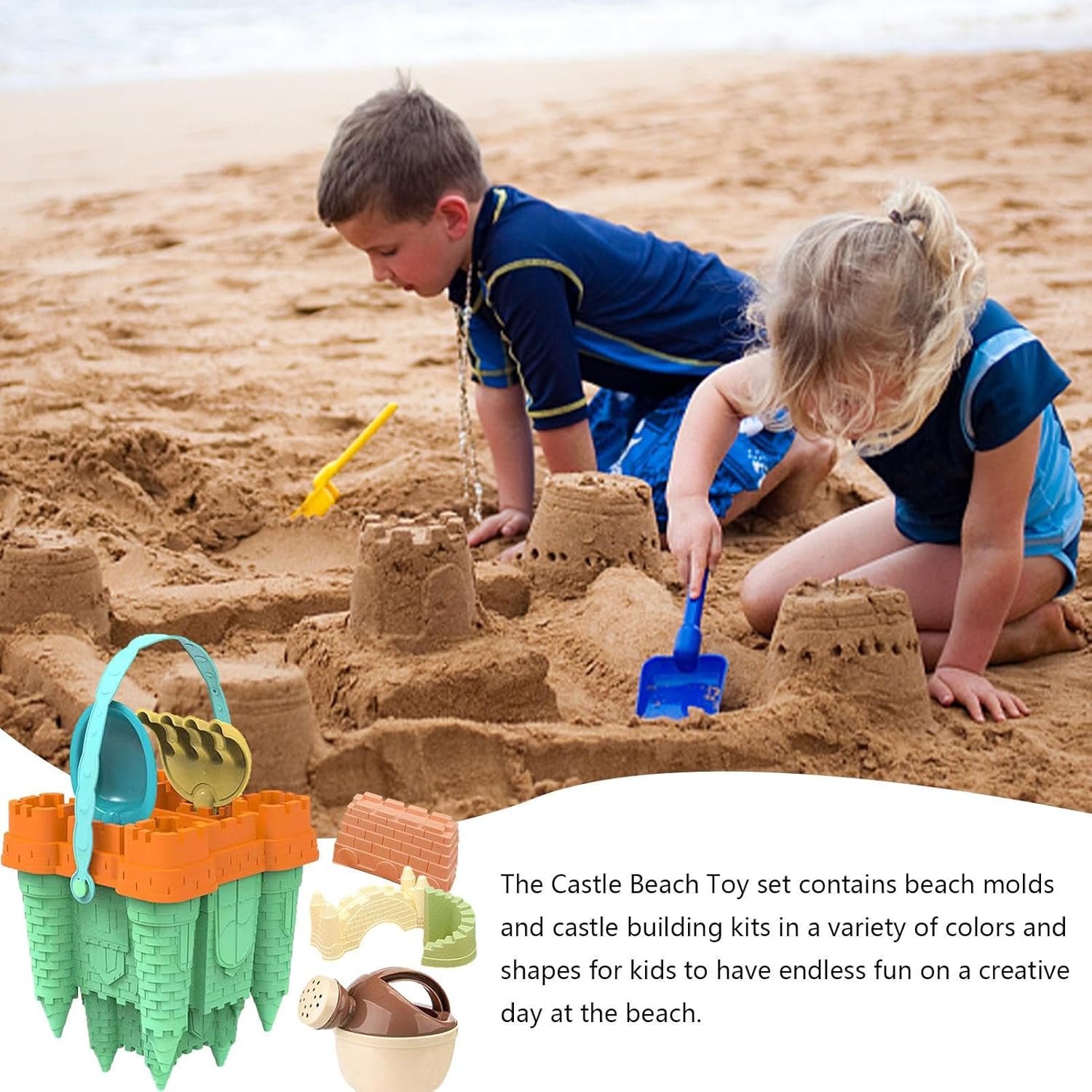 Materiale durevole: divertiti sulla spiaggia per ore con questo kit di castelli di sabbia realizzato con materiali sicuri e innocui per darti un divertimento duraturo e garantire che il kit rimanga indenne dalla sabbia. Felicità creativa: con gli stencil da spiaggia in vari colori e forme, lascia che i bambini trascorrano una giornata creativa in spiaggia e si divertano di più a costruire i propri castelli di sabbia. Ampiamente applicabile: diventa creativo con il nostro kit castello di sabbia che include , strumenti e custodia. per il divertimento tutto l'anno, usalo per costruire castelli sulla sabbia o sulla neve. Stimola la creatività: questo kit castello di sabbia offre ore di divertimento ai tuoi bambini, mentre sviluppano la coordinazione occhio-mano, l'immaginazione e la creatività. Conservazione senza disordine: la borsa a rete è dotata di fori per la fuoriuscita della sabbia per evitare che la sabbia o l'acqua si depositino sui giocattoli, mantenendoli puliti e igienici, facilitando l'organizzazione e il trasporto del kit.