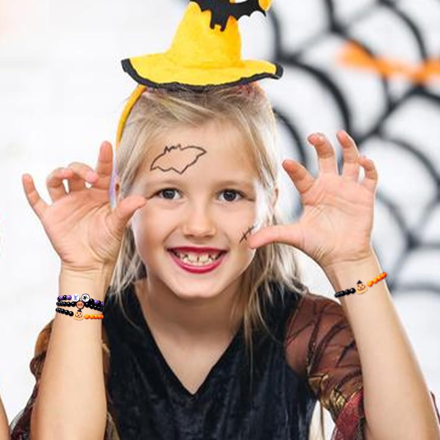 Kit completo per creazioni: Con filo elastico incluso, questo kit braccialetti semplifica la realizzazione, rendendo facile creare design e soddisfare tutte le esigenze creative senza sforzo Gioia del Crafting Halloween: Progettato per attività creative di Halloween, questo kit braccialetti porta allegria e funziona magnificamente come regalo per feste, offrendo opportunità coinvolgenti per godere tradizioni creative durante la stagione dei festeggiamenti Materiali affidabili: La composizione con perline in resina sicure e materiali di qualità garantisce sicurezza per l'utente, rendendo questo kit una scelta affidabile per progetti artistici Halloween adatti a diverse fasce d'età e esperienze creative senza rischi Design creativo braccialetti: Realizza braccialetti personalizzati con il kit braccialetti halloween, per esprimere il proprio stile e divertirsi creativamente, ideale sia per principianti che esperti che cercano nuove idee fai da te festività Crea gioielli Halloween: Realizza festivi creativi e divertenti con perline in resina a tema con disegni di zucche, teschi e fantasmi, perfetti per attività di fai da te durante le festività stagionali