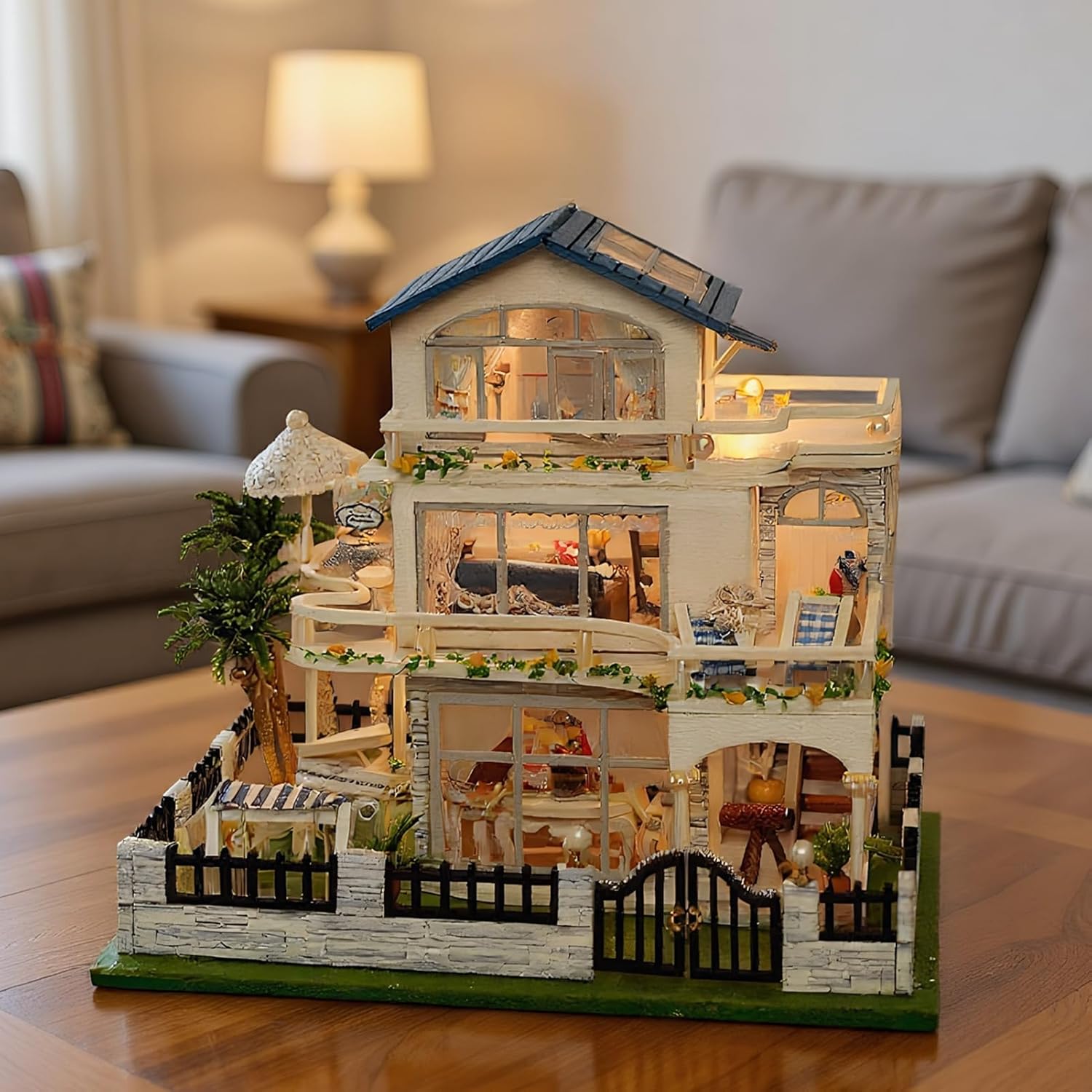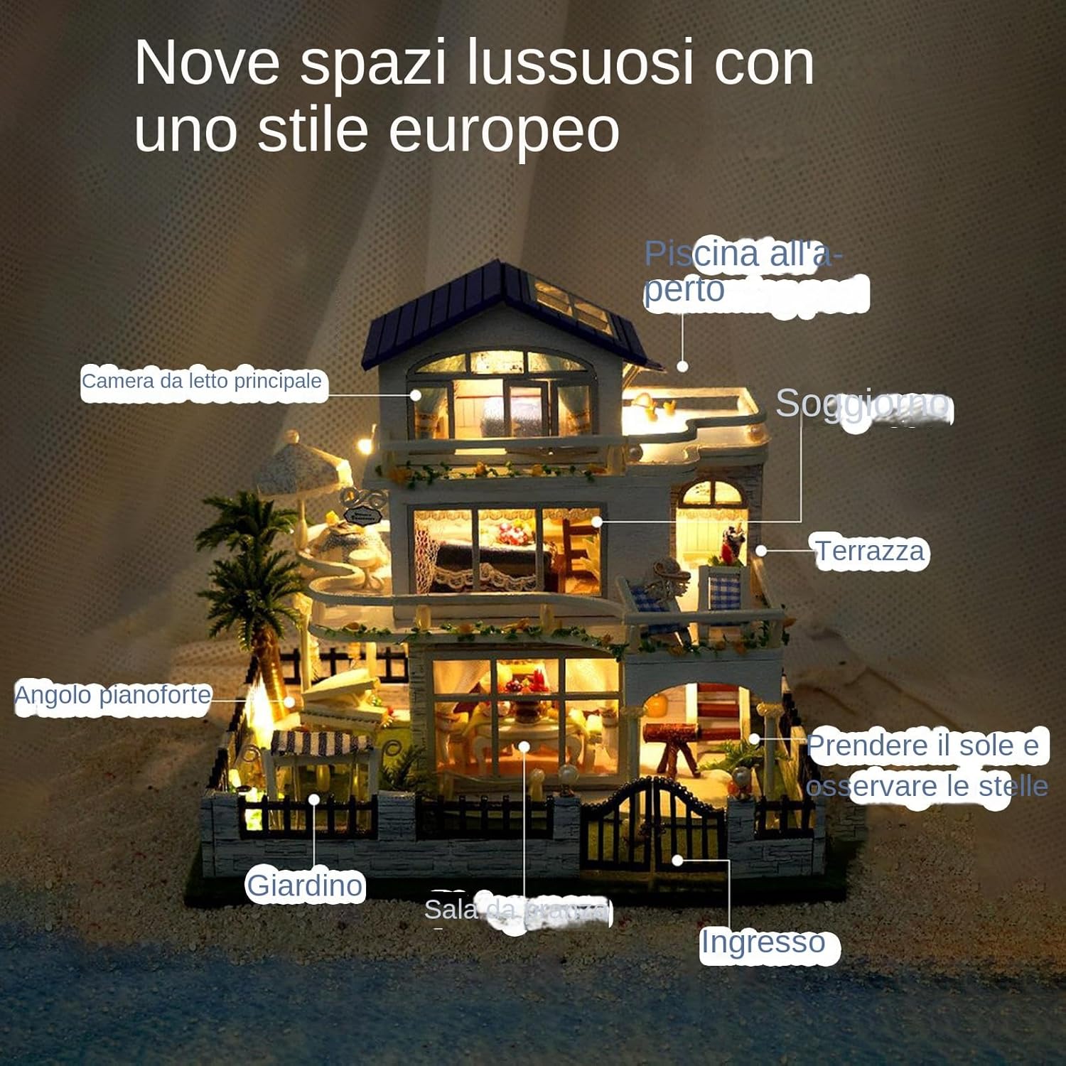 Ispira la gioia artistica del montaggio: Coinvolge i costruttori in un processo appagante di costruzione di modellini villa 3D in legno, aumentando creatività e attitudine al problem solving per fasce d'età diverse Illuminazione Accogliente: Le luci led integrate donano fascino e comfort, ideali per valorizzare la decorazione per scrivania ed esibire con eleganza il modellino illuminato Dettagli Precisi: La lavorazione raffinata e i dettagli realistici del kit casa in miniatura in legno garantiscono un'attrattiva visiva immediata, ricreando fedelmente le caratteristiche di un'abitazione Creazione Originale: Stimola l'immaginazione di bambini e ragazzi con questo kit fai da te. Regalo significativo per occasioni speciali che incoraggia la manualità e regala ore di coinvolgente relax creativo. Sviluppo Abilità: Costruire questa casa in favorisce l'apprendimento pratico e le capacità motorie fini, garantendo un'attività piacevole e intellettualmente arricchente per principianti ed esperti