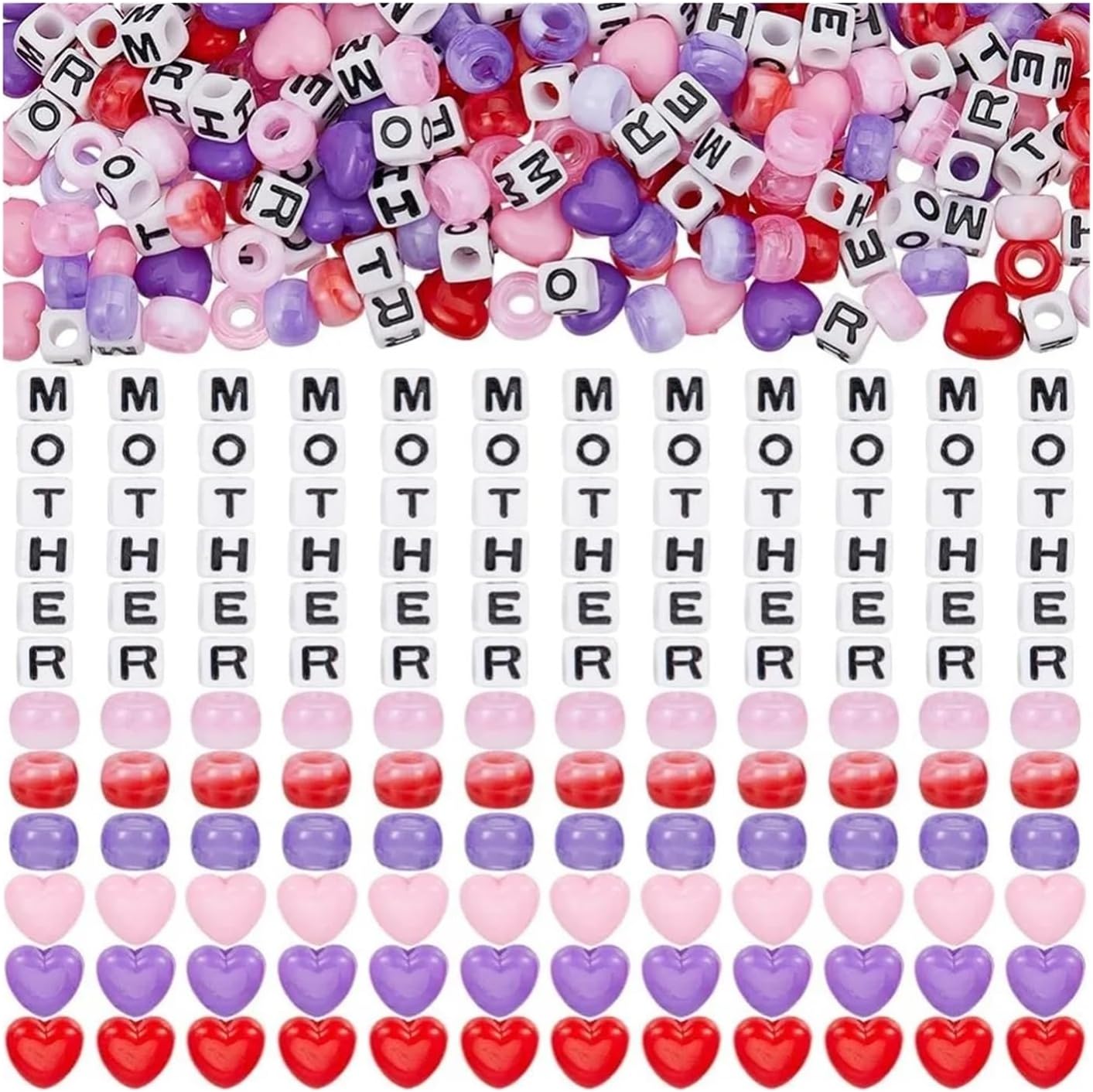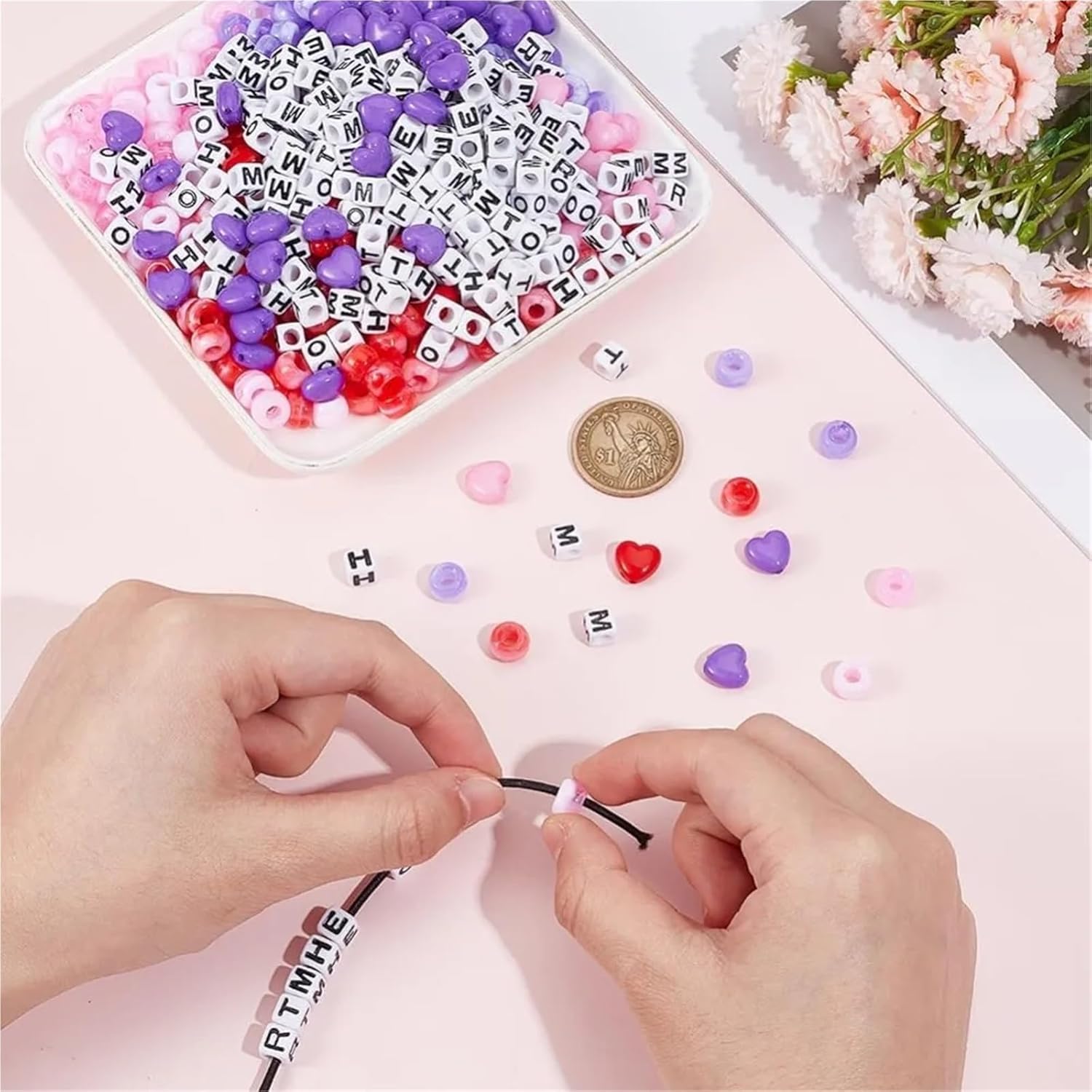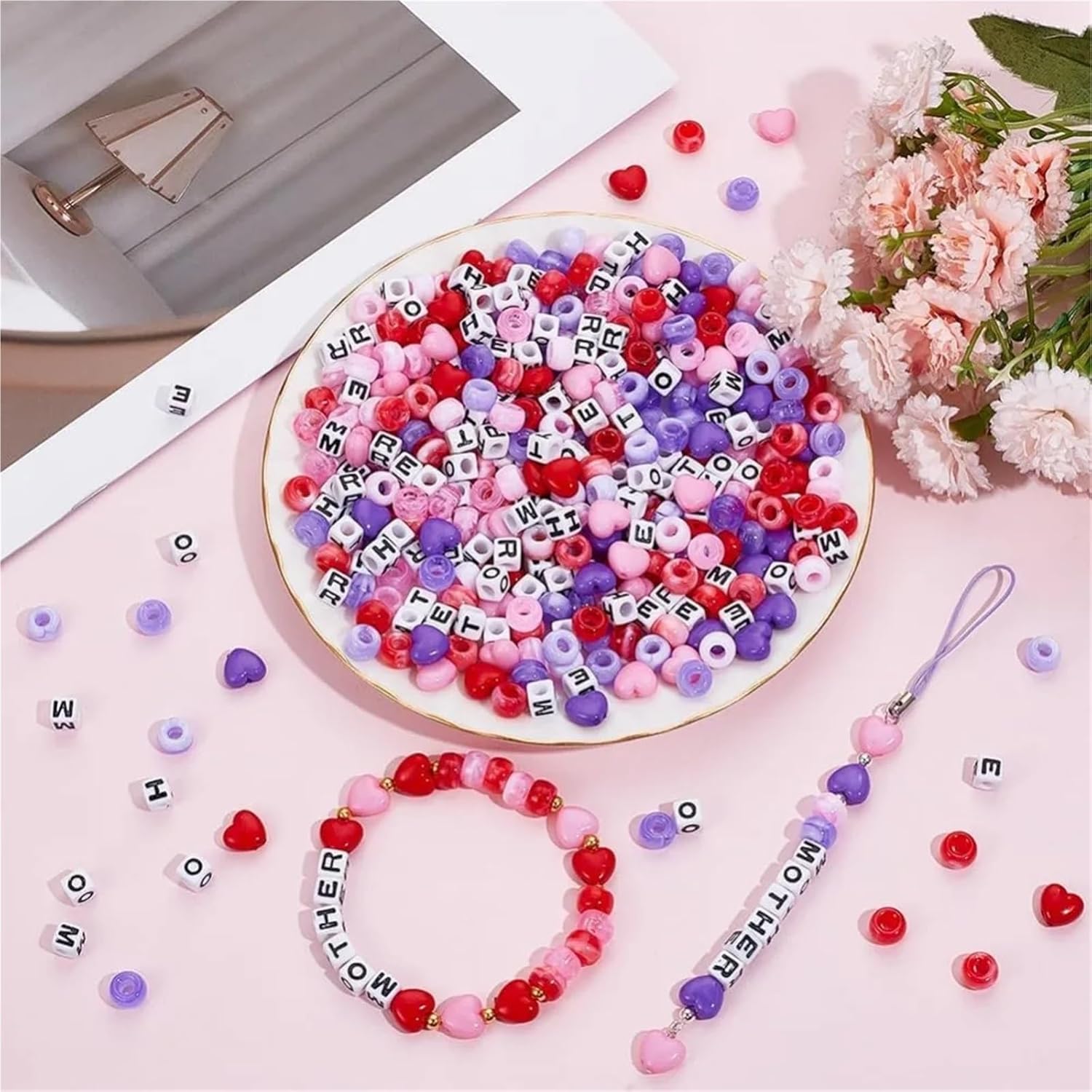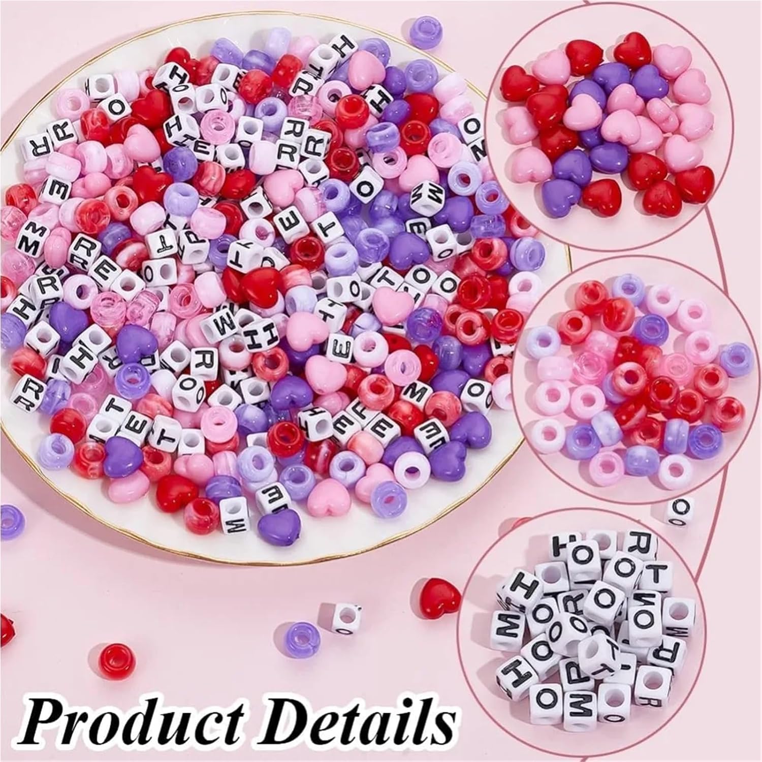 Kit per Fare Braccialetti Kit for braccialetti da 660 pezzi, kit for la creazione di con perline pony, e lettere in acrilico, for cuori rossi, rosa viola